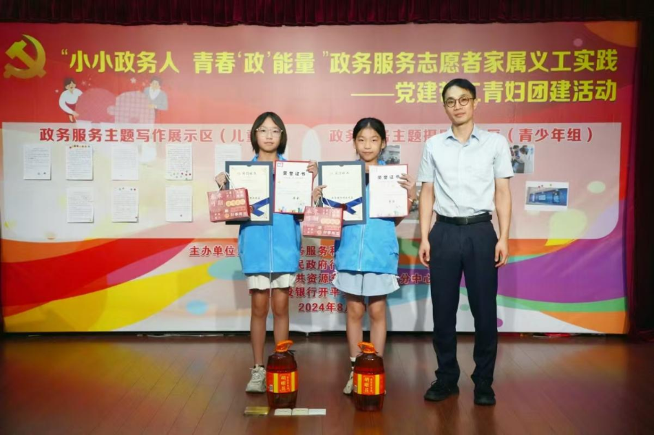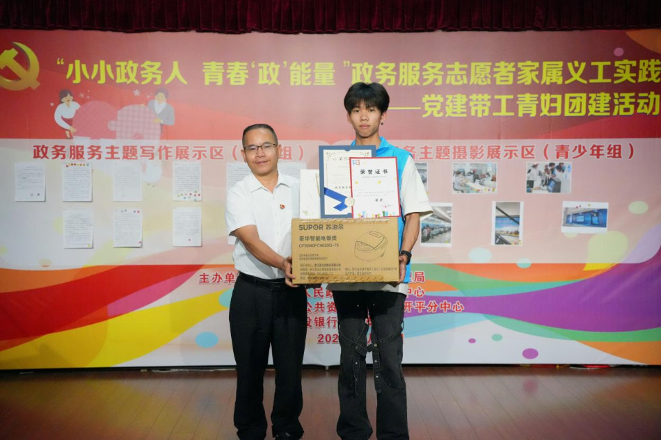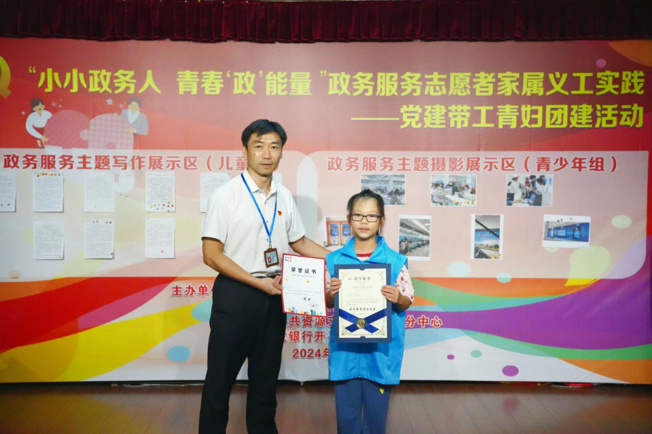 為深入學(xué)習貫徹黨的二十大和二十屆三中全會精神,培育和踐行社會主義核心價值觀,弘揚奉獻、有愛、互助、進步的志愿精神,培養(yǎng)廣大少年兒童的服務(wù)精神和社會參與能力,助力我市兒童友好城市建設(shè),為全面深化政務(wù)服務(wù)改革貢獻志愿力量,打造優(yōu)質(zhì)、溫情的營商環(huán)境,8月21日,市政數(shù)局、市行政服務(wù)中心、公共資源交易中心開平分中心和中國建設(shè)銀行開平支行以黨建共建為載體,聯(lián)合舉辦“小小政務(wù)人 青春‘政’能量”政務(wù)服務(wù)志愿者家屬義工實踐——黨建帶工青婦團建活動。 活動中,19名職工家屬化身小志愿者,在中國建設(shè)銀行開平支行代表帶領(lǐng)下參觀了企業(yè)黨建墻、志愿者服務(wù)站,深入了解企業(yè)黨建工作及志愿服務(wù)工作性質(zhì)和重要意義,為實踐活動開展打下了良好基礎(chǔ)。 隨后,市行政服務(wù)中心代表為小志愿者介紹了中心志愿者服務(wù)站的急救服務(wù),詳細講解了自動體外除顫器的使用方法,小志愿者快速掌握了急救技能,提高了生命安全意識。 緊接著,小志愿者投身政務(wù)服務(wù)大廳開展志愿服務(wù)實踐,主動幫助群眾取號預(yù)約、指引群眾使用自助設(shè)備,解答群眾咨詢。在服務(wù)大廳中,隨處可見小小的“政務(wù)藍”身影,忙碌在自己的志愿服務(wù)崗位上,其熱情青春的服務(wù)也贏得了群眾的贊揚。 志愿服務(wù)實踐結(jié)束后,兒童志愿者們用稚嫩真誠的文字記錄自己的志愿服務(wù)經(jīng)歷,寫下了本次志愿服務(wù)實踐活動的感想感悟,并對政務(wù)服務(wù)建言獻策。其中一位小志愿者寫道:“長大后要像媽媽一樣,把服務(wù)好每一位人民群眾作為心中最偉大的理想”,政務(wù)服務(wù)種子正撒播在每一位參與活動的小志愿者心中。少年志愿者們則在大廳現(xiàn)場對政務(wù)服務(wù)亮點進行取景拍攝,記錄下一幀幀生動、真實的社會畫面。最后,小志愿者們亮出作品,通過評委評分和志愿者們互評,最終得出獎項結(jié)果并頒發(fā)獲獎證書和獎品。 市政數(shù)局黨組成員、行政服務(wù)中心主任顏劍超為獲得政務(wù)服務(wù)主題寫作一等獎志愿者頒獎 中國建設(shè)銀行開平支行副行長勞嘉榮為獲得政務(wù)服務(wù)主題寫作二等獎志愿者頒獎 市行政服務(wù)中心副主任周建寧為獲得政務(wù)服務(wù)主題寫作三等獎志愿者頒獎 市政數(shù)局黨組成員葉朝銳為獲得政務(wù)服務(wù)主題攝影一等獎志愿者頒獎 公共資源交易中心開平分中心副主任勞麗芬為獲得政務(wù)服務(wù)主題攝影二等獎志愿者頒獎 市行政服務(wù)中心副主任張玉立為獲得政務(wù)服務(wù)主題攝影三等獎志愿者頒獎 此次活動通過政銀共建交流,進一步強化了黨建引領(lǐng),有效加強了政與銀、社會和個體、職工和家屬之間的緊密聯(lián)系,是文明與愛心的傳播,具有良好實踐價值和社會意義。小志愿者們在志愿服務(wù)過程中直抒己見、擔當善為,大大培養(yǎng)了廣大少年兒童的服務(wù)精神和社會責任感,激勵少年兒童們有為奮發(fā),為我市政務(wù)服務(wù)質(zhì)量的提升又添了一份青春力量。