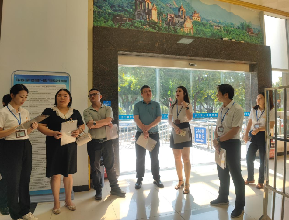 為進一步規范窗口服務標準,強化作風建設,全面提升政務服務效能,打造黨支部“五心”政務先鋒(紅心向黨、初心為民、匠心提質、廉心守正、暖心服務)品牌,5月12日,行政服務中心組織各進駐部門分管領導及大廳黨員代表組成聯合巡查組,對政務服務大廳窗口及后臺辦公區域開展全面巡查,重點圍繞儀容儀表、工作紀律、服務規范、業務辦理、環境衛生及安全生產等六大方面進行督導檢查,助推政務服務標準化、規范化建設再上新臺階。 一、嚴查細糾,夯實服務基礎 巡查組采取實地查看、隨機詢問、查閱臺賬相結合的方式,深入各窗口及后臺辦公區域開展“地毯式”檢查。在儀容儀表方面,重點查看窗口人員是否統一著裝、佩戴工牌,儀態舉止是否符合服務規范;工作紀律方面,檢查是否存在脫崗、串崗、玩手機等違規行為;服務規范方面,隨機抽查業務辦理流程是否嚴格落實“首問負責制”“一次性告知”等制度,并模擬群眾咨詢場景檢驗服務態度。針對業務辦理環節,巡查組重點核查了高頻事項的辦結時限、審批材料精簡落實情況及“跨域通辦”等特色窗口運行效能,確保改革舉措落地見效。 二、聚焦安全,筑牢服務防線 結合安全生產工作要求,巡查組對大廳消防設施、應急通道、用電設備及檔案管理區域進行專項排查,現場檢查消防器材有效性,檢查電路是否存在老化隱患,并重點提醒各窗口嚴格管理紙質檔案存放,杜絕安全事故發生。巡查中發現部分電線網線外露問題,已當場督促整改。 三、立行立改,推動常態長效 此次巡查共發現7項存在問題,均建立臺賬并明確整改時限。行政服務中心主任顏劍超強調:“巡查不是終點,而是優化服務的起點。行政服務中心及各進駐部門要以問題為導向,嚴格執行《開平市人民政府行政服務中心黨員巡查大廳工作細則》,將巡查結果納入年度考核及創建滿意服務活動,切實推動政務服務從‘被動整改’向‘主動提升’轉變。” 下一步,行政服務中心將建立“巡查-反饋-整改-回頭看”閉環管理機制,常態化開展黨員巡查大廳工作,通過以查促改、以評促優,持續打造高效規范、暖心便民的政務服務環境,為優化區域營商環境注入新動能。