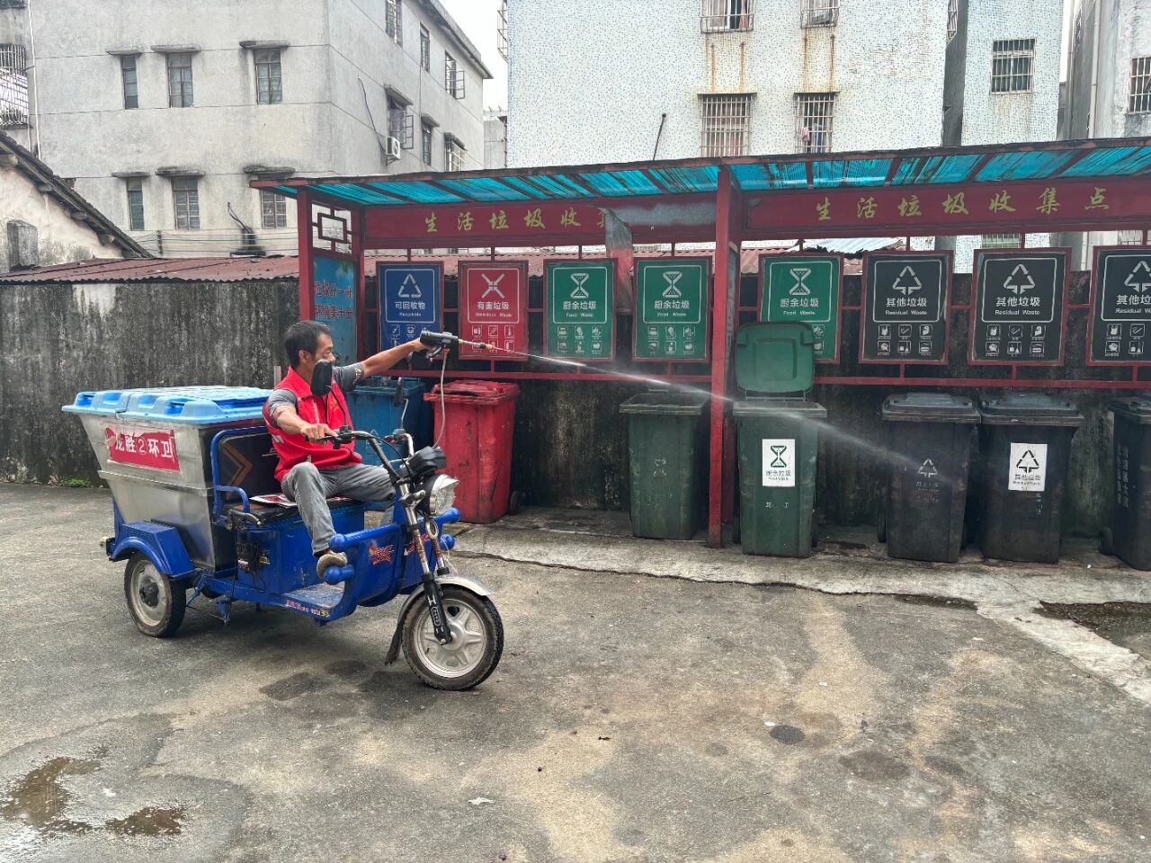 在開平市龍勝墟社區(qū),總能看到一個(gè)忙碌的身影,他時(shí)而身著迷彩服,在龍勝中學(xué)操場(chǎng)上帶領(lǐng)新生軍訓(xùn);時(shí)而在街巷間俯身清理垃圾,細(xì)致監(jiān)督環(huán)境衛(wèi)生;時(shí)而駕駛?cè)嗆嚧┧笥谛骀?zhèn),收集清運(yùn)大件廢棄物;時(shí)而又背負(fù)消殺設(shè)備,堅(jiān)守在防蚊滅蚊一線。這位身影的主人,正是龍勝墟社區(qū)“兩委”干部、退伍軍人——吳潤(rùn)球。