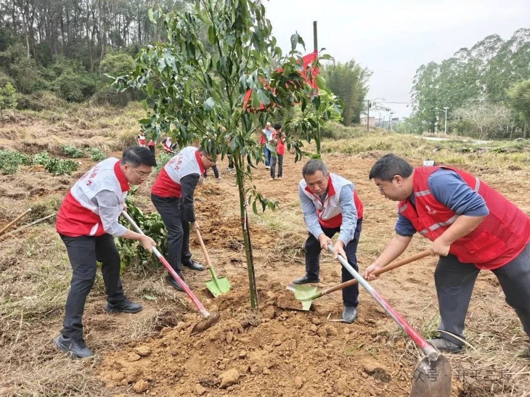 動員大會結束后,植樹活動火熱開展。現場一派繁忙景象,領導干部與黨員群眾代表分工協作、默契配合,揮鍬鏟土、扶正樹苗、壓實根部、提水澆灌,每一個步驟都一絲不茍。大家以實際行動踐行生態文明理念,將一棵棵新苗扎根衛民公園,在僑鄉的春日里種下綠色希望。經過近一個小時的辛勤勞作,一排排新苗迎風挺立,為逕頭社區衛民公園增添了一道清新的綠色風景線,也讓衛民公園的生態底色更加鮮明。