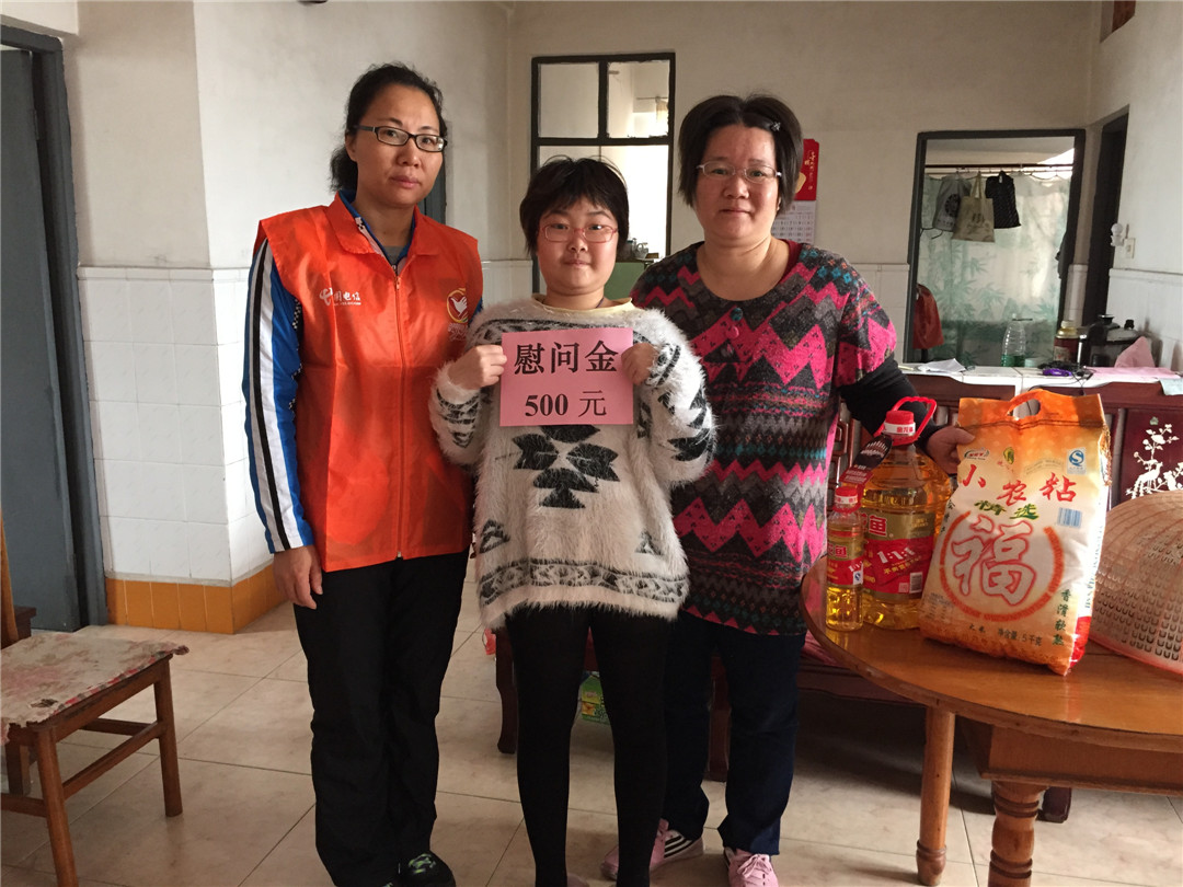 慰問組還來到了患有紅斑狼瘡和先天性心臟病的困境兒童司徒潔婷的家中,了解她的病情狀況、生活情況等,鼓勵她要勇敢面對病魔,積極治療,樂觀生活,早日恢復健康,走出困境。