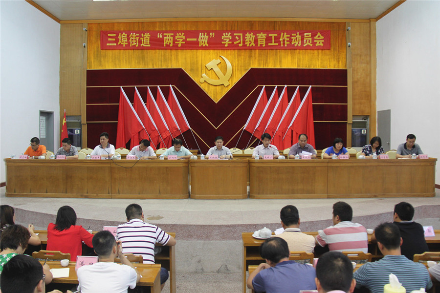 為認真貫徹落實上級關于“兩學一做”工作部署,5月9日下午,三埠街道召開 “兩學一做”學習教育工作動員會。街道全體黨政班子成員、機關副股級以上黨員干部、各村(社區)黨組織書記和組織委員、基層站所以及“兩新”黨組織書記共140多人參加了會議。會議由街道黨工委副書記麥振廣主持。
