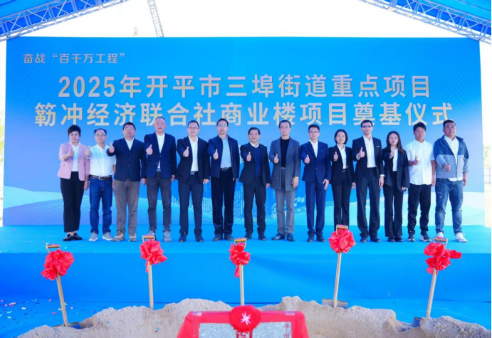 3月19日:2025年開平市三埠街道重點項目簕沖經濟聯合社商業樓項目奠基儀式順利舉行,為集體經濟發展注入新引擎,助力轄區產業布局優化與民生配套升級。
