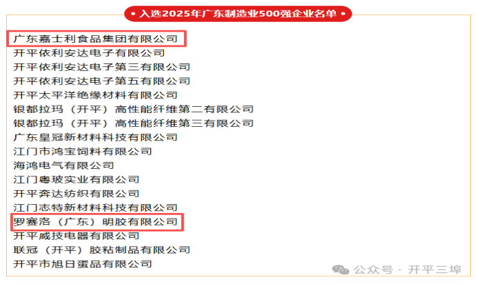 10月29日:2025年廣東省制造業500強企業峰會暨中國先進機床創新與應用論壇在東莞舉行,廣東嘉士利食品集團有限公司、羅賽洛(廣東)明膠有限公司等2家街道企業入選“2025年廣東制造業500強”,以強勁實力彰顯三埠產業發展硬支撐。