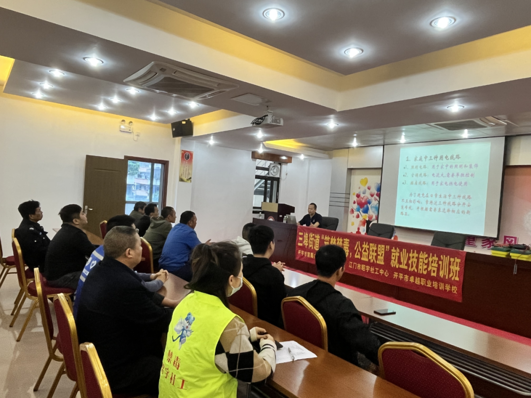 3月27日下午,三埠街道禁毒工作小組領導辦公室、江門市昭宇社工中心聯合開平市卓越職業培訓學校,在三埠邑康家園開展以“筑夢禁毒,公益聯盟”為主題的就業技能培訓。
