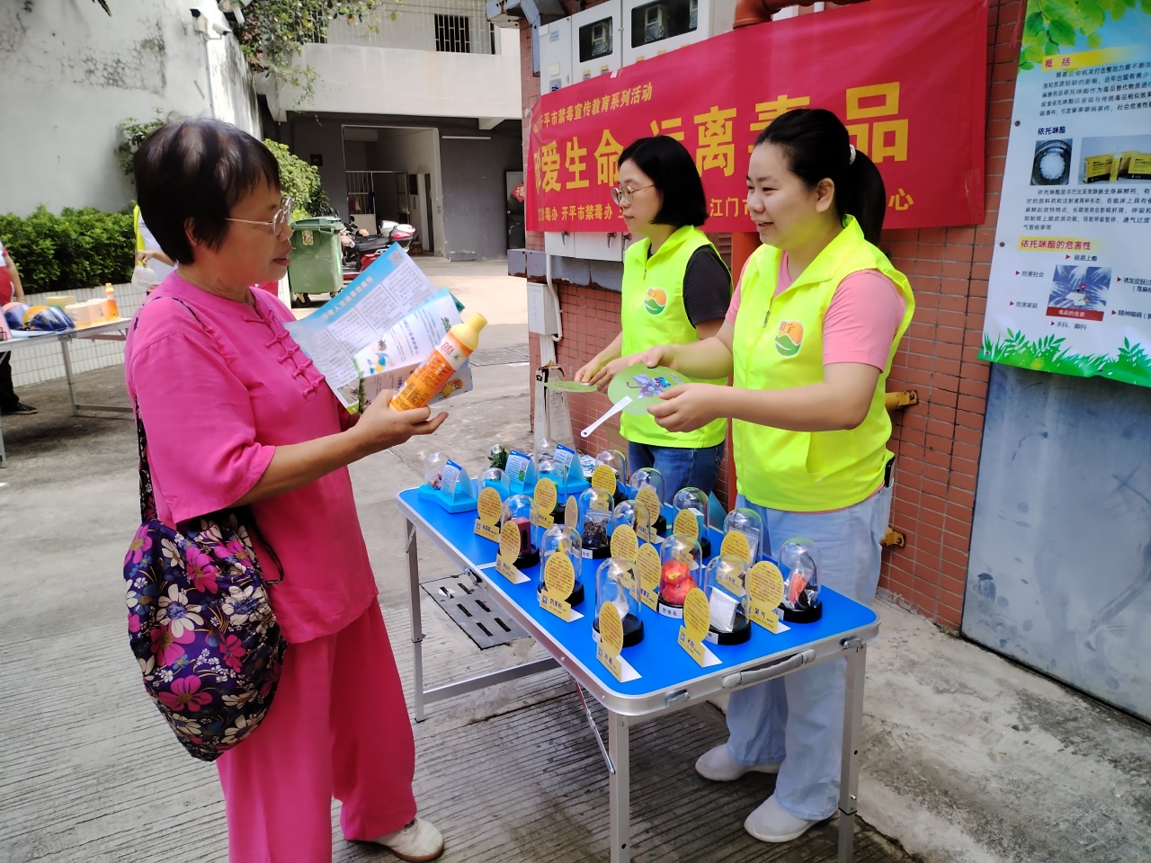 為進一步宣傳新型毒品濫用危害,全面普及防范知識,防止新精神活性物質流入市場,切實提高全民禁毒意識和防毒能力,8月3日上午,三埠街道禁毒工作領導小組辦公室聯合江門市昭宇社工中心在富麗花園開展新型毒品替代品“依托咪酯”禁毒宣傳活動。 活動現場,禁毒社工宣講員通過展板和宣傳單張內的圖文資料,詳細向群眾科普“依托咪酯”的外觀、濫用方式、吸食后的狀態以及危害等知識;提醒群眾目前社會上出現一些不法分子利用“依托咪酯”的麻醉作用,將其用作毒品的替代品進行銷售,嚴重擾亂正常的藥品管理秩序;呼吁群眾要樹立珍愛生命、遠離毒品的正確觀念,遠離“依托咪酯”,拒絕不良誘惑,積極配合公安機關和市場監管部門的積極檢舉濫用“依托咪酯”等行為。 此次防范毒品濫用宣傳教育活動,廣泛傳播了“健康人生、綠色無毒”理念,進一步加強了他們對麻醉類藥品、精神類藥品的認知,切實增強廣大群眾對新型毒品、軟性毒品的識別能力和防范能力,為構建無毒三埠奠定堅實的群眾基礎。