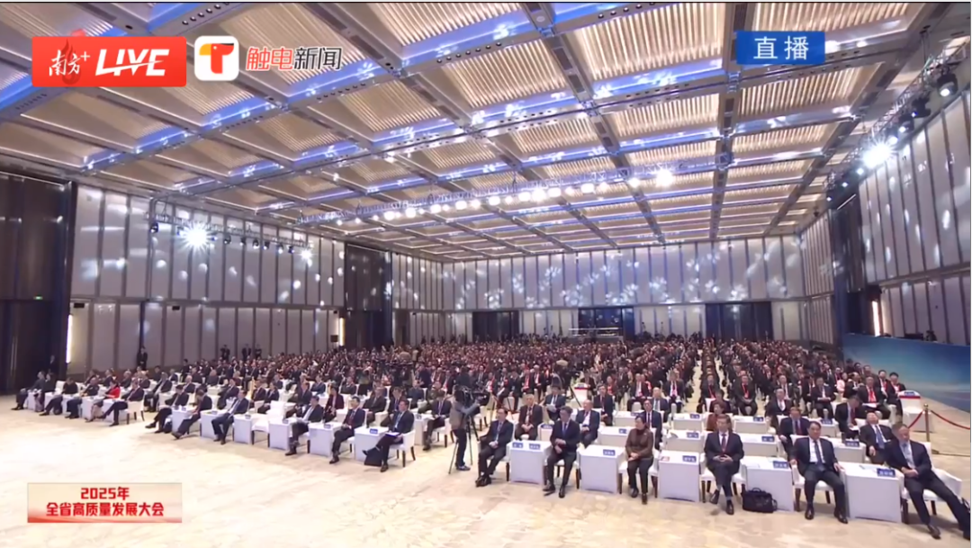 2025年全省高質量發展大會現場,此為直播截圖。來源:南方+客戶端