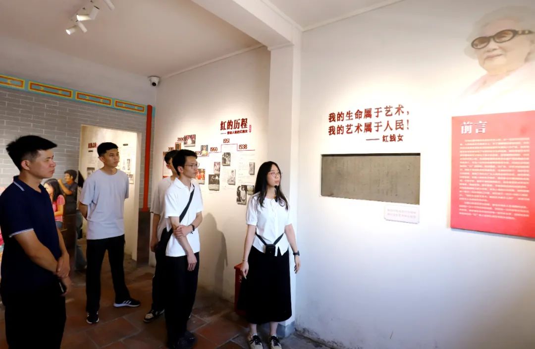 隨后,在講解員的帶領下,青年干部們有序參觀了紅線女故居。一面面記載著紅線女生平大事的墻壁,訴說著這位粵劇宗師對藝術的赤誠追求——為演好一個角色反復揣摩唱腔身段,為讓粵劇走向大眾主動嘗試與現代藝術融合,即便年過七旬仍堅持下鄉演出。在聽到紅線女并沒有因父親的反對而放棄學藝,反而暗自下定決心:“一定要成戲又成人”,并通過自身的努力在粵劇藝術上成就了很高的造詣時,青年干部們深受觸動,大家紛紛表示,要將藝術家的執著追求轉化為干事創業的強勁動力,以更加飽滿的熱情,更加昂揚的斗志,更加務實的作風,扎根基層沃土,綻放青春光彩。