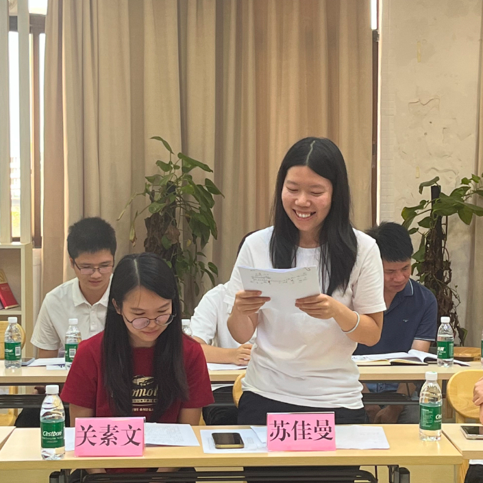 訓練班設置了開平話自我介紹、開平話抽卡答題和開平話文段朗讀等環節,在評委和導師的幫助下,“紅線女”“譚國標”“泮村燈會”等承載著本地文化底蘊的詞語頻頻從外地學員的口中講出,“水暖衛浴”“金山大橋”等象征著水口發展的關鍵詞持續在會場中響起。除了練習讀音外,導師們還熱情地為學員們講解介紹詞語背后的內涵,加深年輕干部對水口鎮民俗文化、產業發展和重要點位的認識和了解,持續激發干事創業、擔當作為的激情和動力。