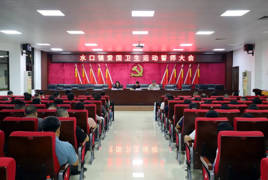 10月17日晚,在鎮(zhèn)政府會場,水口鎮(zhèn)全體領導班子成員、駐村組負責人、村(社區(qū))書記等80多人參加全鎮(zhèn)愛國衛(wèi)生運動誓師大會,明確“全域動員、全民參與、全力攻堅”的目標任務,建立“黨政主導+部門協(xié)作+村居響應+全民參與”的全域防控體系,將背街小巷、農貿市場、閑置地塊等重點區(qū)域整治任務進行分片包干。同時,強調要以“時時放心不下”的責任感,把愛國衛(wèi)生運動打造成民生工程、民心工程!“我們將發(fā)揮專業(yè)消殺隊作用,加大重點區(qū)域消殺頻次!”“黨員先鋒隊將帶頭開展‘敲門行動’,入戶清積水,滅蚊蟲!”各部門代表依次表態(tài),擲地有聲的承諾掀起誓師熱潮。
