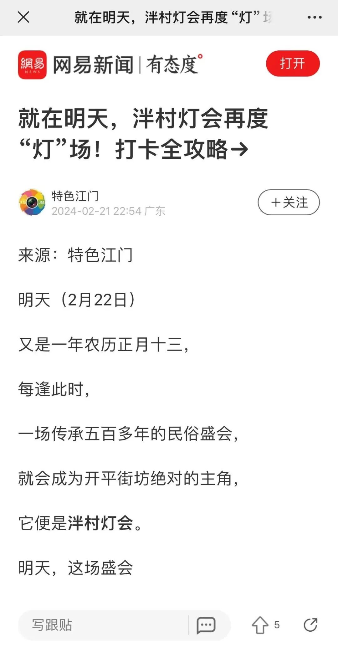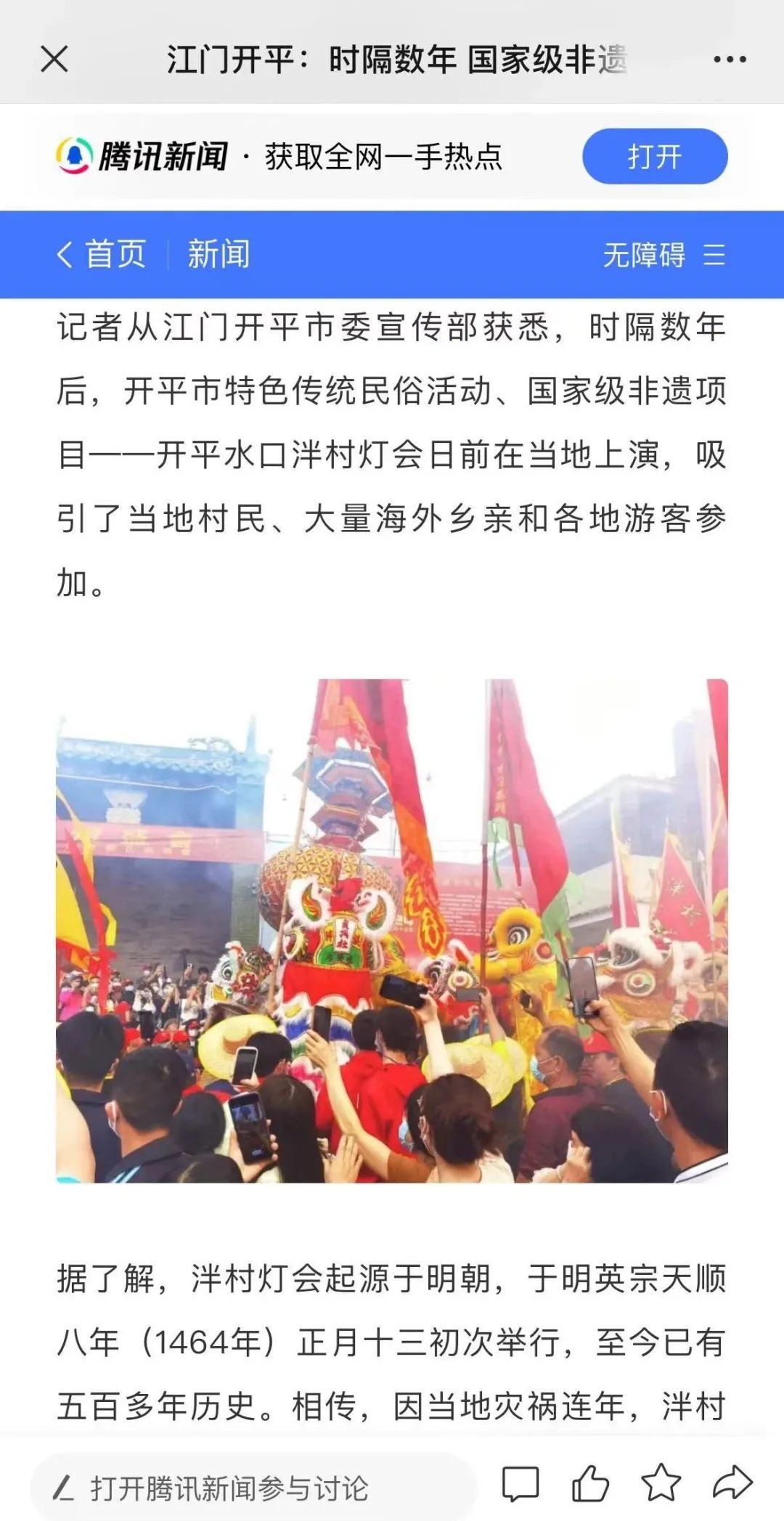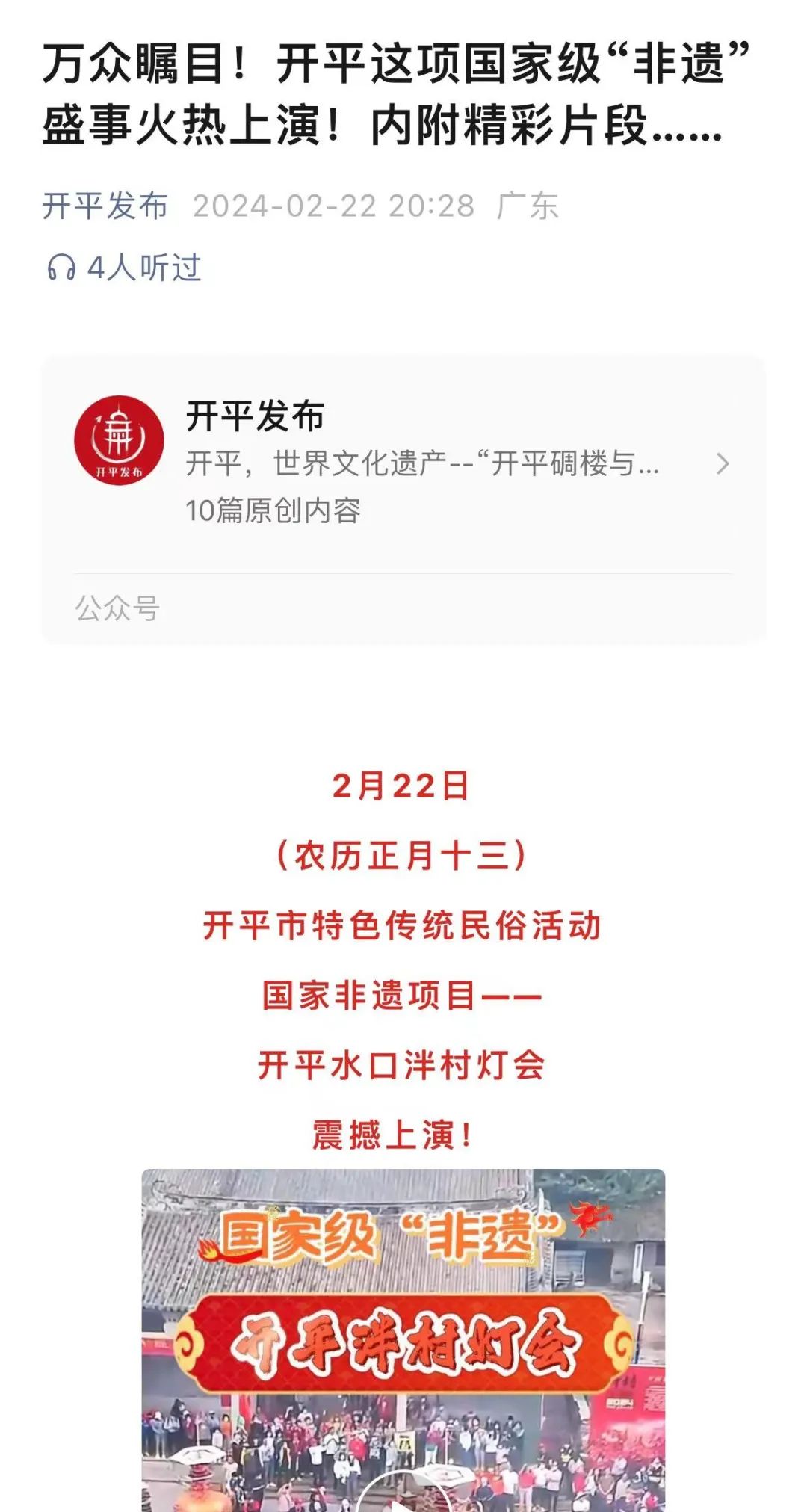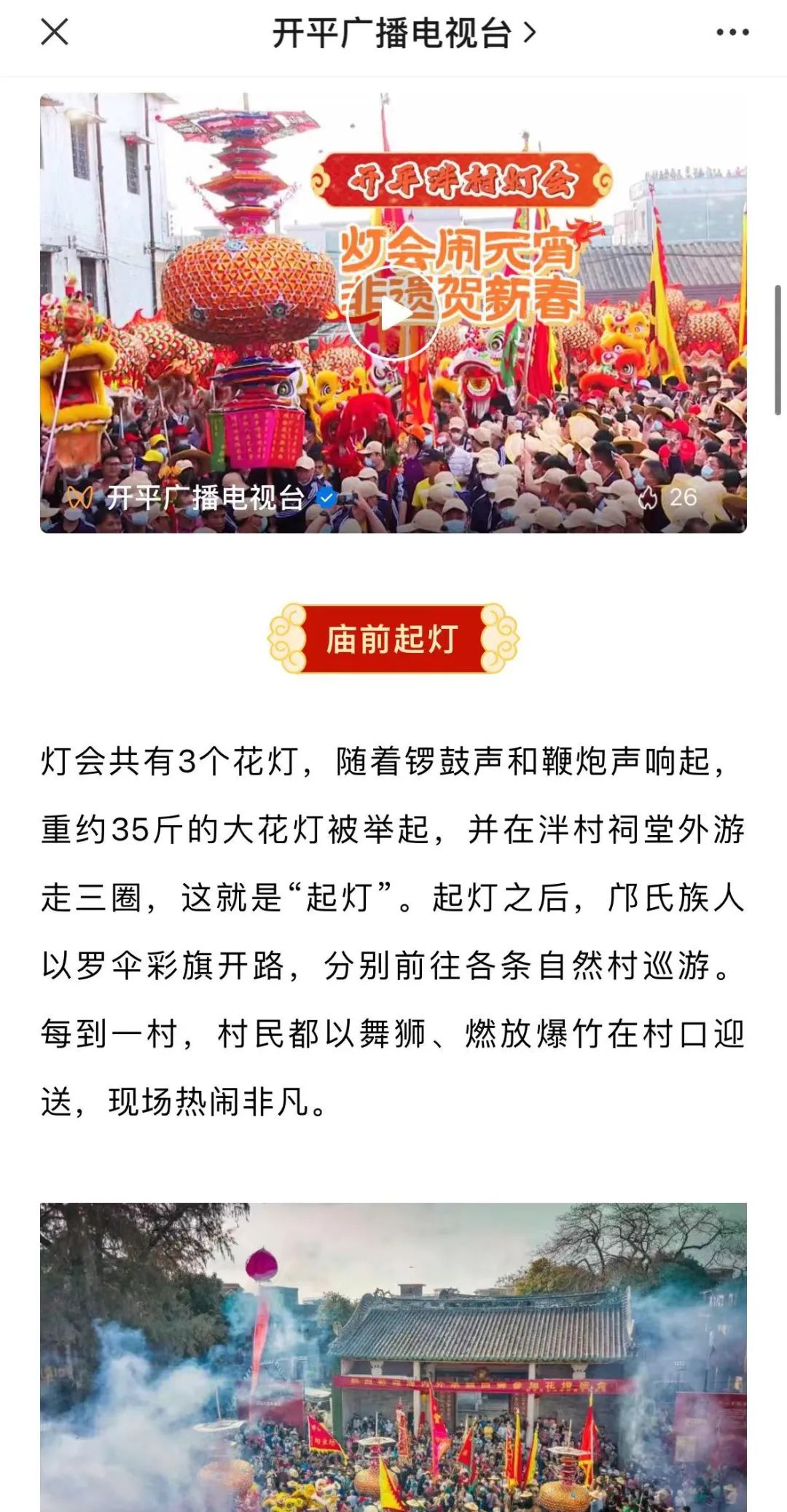 超75萬人(次)觀看!多家媒體刷屏報道!開平水口泮村燈會出圈出彩!