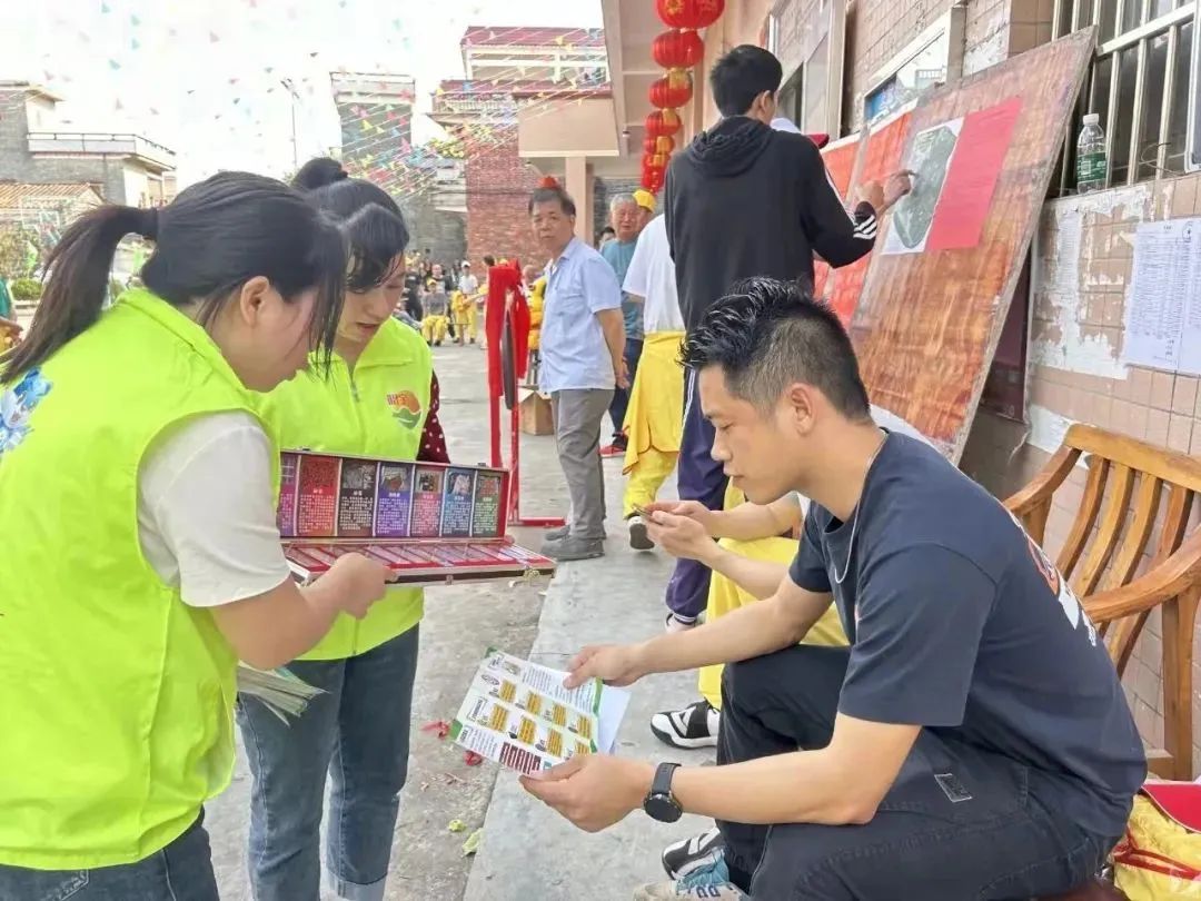 舞燈之時,龍獅助威,鑼鼓鞭炮齊鳴……三個色彩斑斕的泮村花燈開路,吸引了大批群眾圍觀?;顒蝇F場,禁毒社工跟隨著花燈隊伍,沿街向群眾送去新春祝福,邀請群眾與禁毒標語牌在燈會文化墻前合影,“珍愛生命 遠離毒品”“我為禁毒打call”的標語讓禁毒氛圍更加濃厚。禁毒社工還不時向圍觀群眾講解禁毒知識,展示仿真毒品模型,提醒廣大群眾日常生活中要做到拒絕毒品,健康生活,筑牢禁毒安全防線。