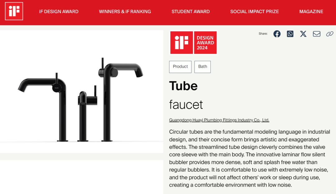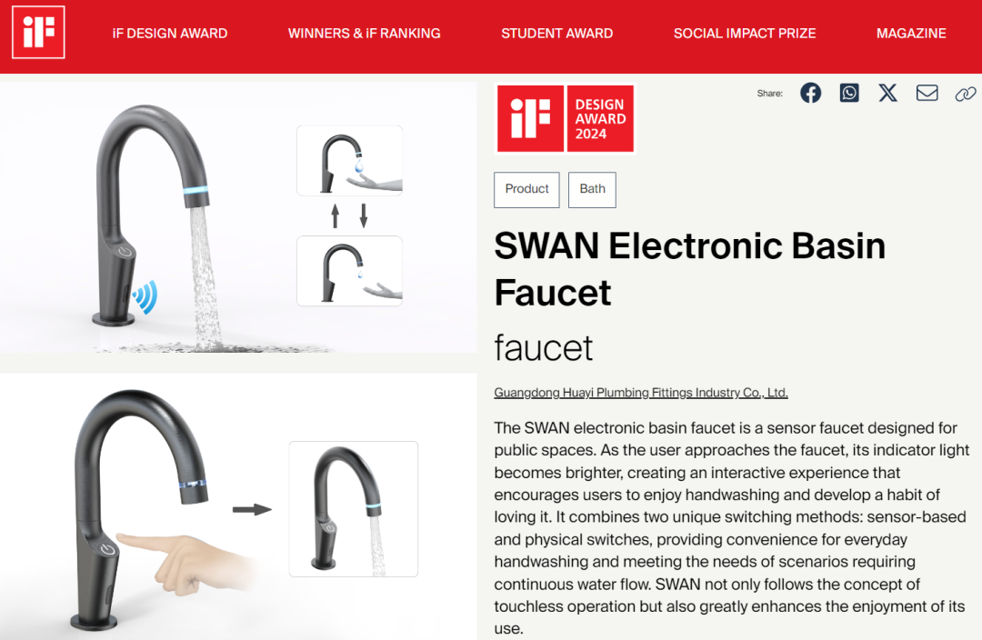 2024開局,華藝就打響開門紅“第一炮”!近日,2024德國IF設計大獎公布最終獲選名單,在這場權威的國際設計盛宴中,華藝衛浴參選的“SWAN電子面盆龍頭”、“Tube面盆龍頭”、“Aquaflex花灑升降桿”憑借出色的設計在數以千萬件優秀作品中脫穎而出,榮獲2024德國IF設計大獎。