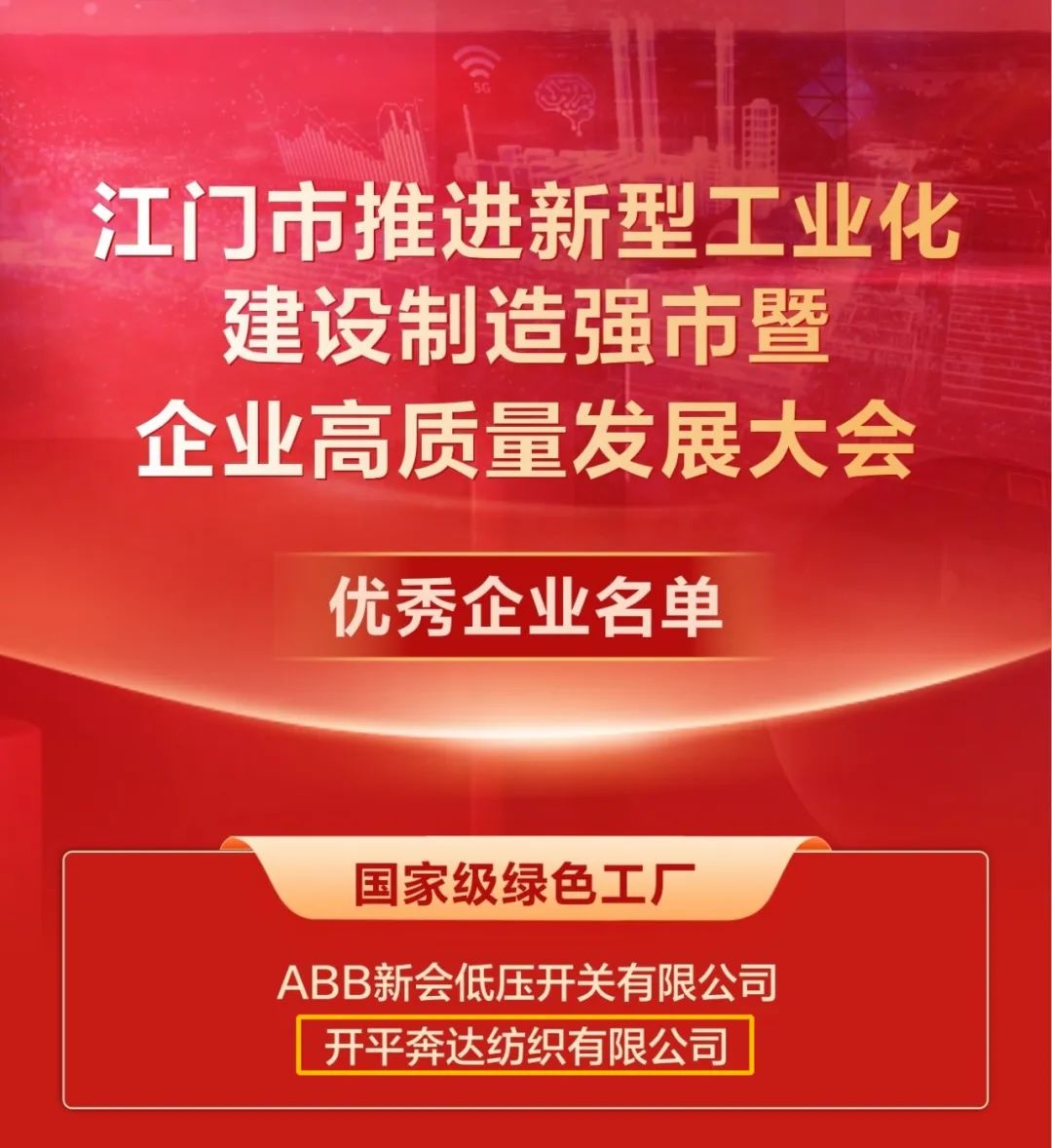 奔達公司致力于節能、環保、功能性面料的開發,榮獲“節能減排創新型棉紡織企業”、“國家紡織行業節能減排技術應用示范企業”、“江門市級清潔生產企業”等殊榮,獲得ISO50001能源管理體系、 ISO14001環境管理體系等多項體系證書。2017 年通過“廣東省江門市工程技術研究中心”認證,2018 年通過 “廣東省高新技術企業”認定,2019 年通過 “廣東省功能型牛仔面料工程技術研究中心”認定;2021年通過了“廣東省紡織行業能效領跑者企業”認定;2023年被評為“國家級綠色工廠”