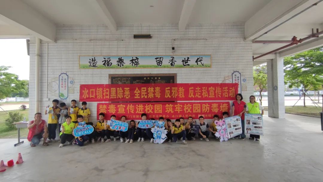 為進(jìn)一步深入推進(jìn)青少年毒品預(yù)防教育,增強(qiáng)在校師生識(shí)毒、防毒、拒毒意識(shí)和能力,筑牢校園禁毒“防火墻”,營(yíng)造濃厚的禁毒氛圍,4月12日下午,水口鎮(zhèn)禁毒工作領(lǐng)導(dǎo)小組辦公室聯(lián)合鎮(zhèn)司法所、鎮(zhèn)綜治辦,水口派出所,水口檢察室,開(kāi)平市昭宇禁毒社工到水口鎮(zhèn)第三小學(xué)開(kāi)展“禁毒宣傳進(jìn)校園,筑牢校園防毒墻”校園禁毒宣傳活動(dòng)。