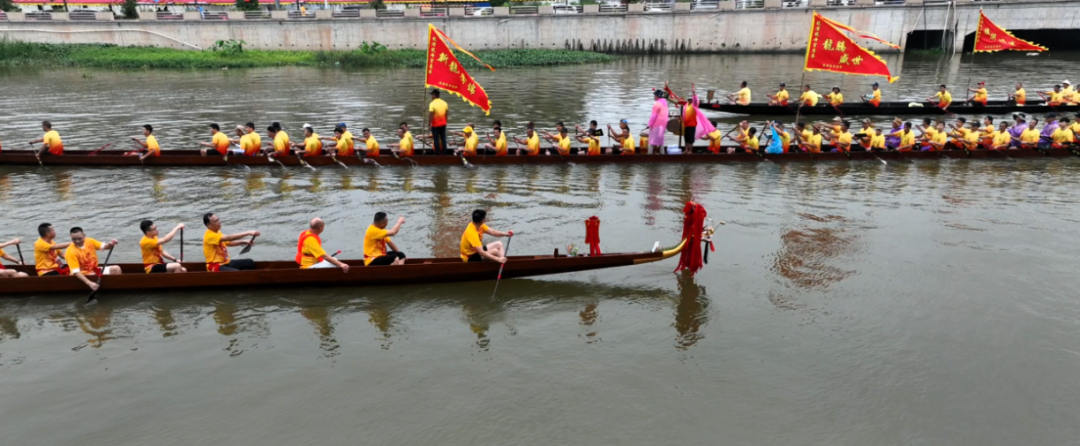 當天下午,一場簡單而傳統的新龍舟乘水儀式在水口鎮新橋水河道中進行。大家按照傳統習俗,酒凈龍頭龍尾、祭龍神、點睛、掛紅、旺船、裝龍頭龍尾,整個儀式飽含著人們對生活平安、順利的美好祝愿。現場鞭炮四起如雷、鼓聲起伏如潮,一河兩岸站滿村民街坊,吶喊聲、歡呼聲不斷,一同見證“新龍”入水。