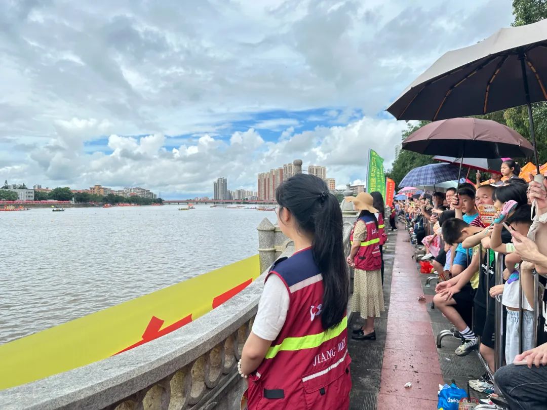 鑼鼓喧天、旌旗飄揚,槳葉飛舞、浪花翻騰!6月10日、11日,“甲辰龍騰 盛世中華”2024全國龍舟大聯動—龍騰百千萬 精彩三點三“嘉士利杯”江門(開平)國際龍舟邀請賽和2024年水口龍東傳統坤甸龍舟邀請賽分別在潭江河段以及水口新橋水舉行。精彩龍舟競渡比賽背后,水口鎮網格員以高度的責任心與執行力,用辛勤和汗水營造了安全和諧的觀賽環境。