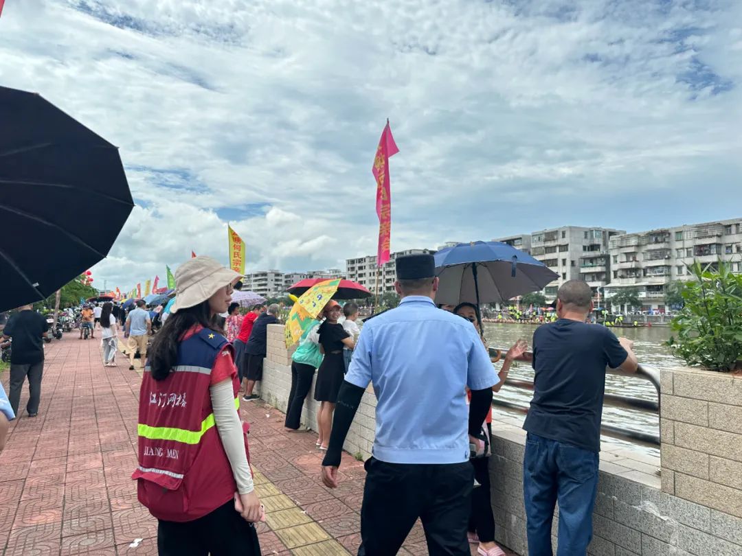 比賽當天,網格員們早早出動,奔赴賽場重要路口、重要點位值班值守,全力做好秩序維護、交通疏導、防控排查等保障工作。盡管端午前后氣候變化多端,晴雨不定,時而艷陽高照,時而雷雨交加,但是網格員們絲毫不減工作熱情,嚴把關口,勇挑重擔,讓廣大市民游客看得開心、看得安全,確保了賽事期間秩序良好,圓滿完成龍舟賽安保工作任務。