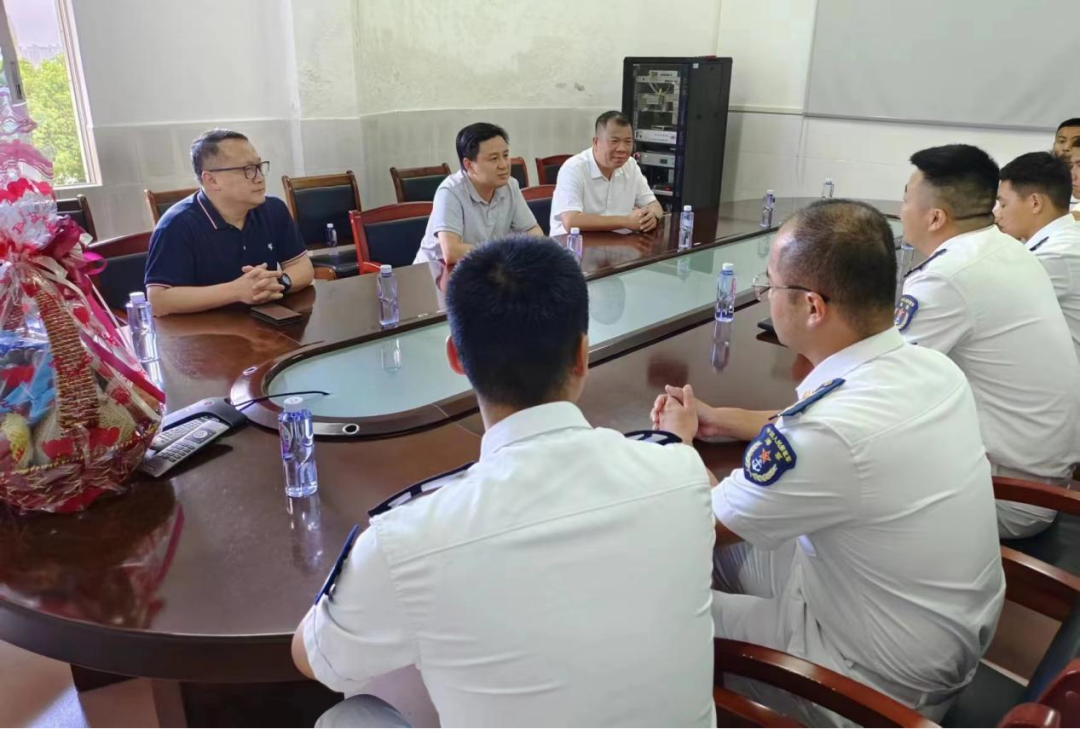 在開新海軍基地,司徒錦泉一行與部隊負責同志進行親切座談交流,對駐地部隊官兵長期以來支持水口鎮(zhèn)經濟社會發(fā)展、維護地方穩(wěn)定所作的貢獻表示感謝,并詳細了解了部隊建設、軍事訓練和生活情況。司徒錦泉表示,當前,水口鎮(zhèn)上下正深入學習貫徹黨的二十屆三中全會精神,全力推進“百千萬工程”、八鎮(zhèn)聯(lián)動等工作加力提速、落地見效,希望軍地雙方持續(xù)加強協(xié)作溝通,繼續(xù)關心和支持水口經濟社會發(fā)展,為水口高質量發(fā)展和社會安全穩(wěn)定保駕護航、再立新功。駐地部隊對鎮(zhèn)黨委、政府的到訪和慰問表示感謝,表示持續(xù)增進軍政軍民團結,合力做好新時代強國強軍事業(yè)。