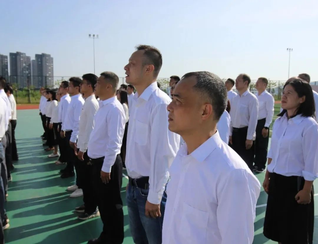 激越高昂的《義勇軍進行曲》響起,升旗手迎風振臂,鮮艷的五星紅旗冉冉升起?,F場黨員干部職工懷著對祖國無比崇高的敬意,身著正裝、列隊肅立、行注目禮,齊聲高唱中華人民共和國國歌,鏗鏘有力的旋律、激昂嘹亮的歌聲久久回蕩。