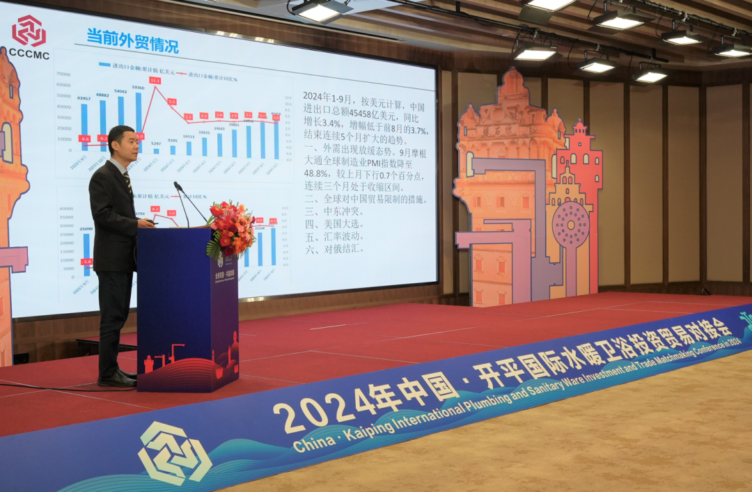 10月28日上午,2024年中國·開平國際水暖衛浴投資貿易對接會暨廣東省開平水口水暖衛浴國家外貿轉型升級基地成果展在赤坎華僑古鎮開幕,來自泰國、哥斯達黎加、巴基斯坦、伊朗、也門、蒙古、贊比亞等國家的客商歡聚一堂,共謀發展大計、共創合作共贏,為開平高水平對外開放和水暖衛浴行業高質量發展注入強勁動力。中國五礦化工進出口商會會長江輝,中國在非企業社會責任聯盟執行委員會主席助理郭洪軍,商務部研究院研究員、博士生導師白明,開平市委副書記、政法委書記關耀東,副市長許永鋒,水口鎮黨委書記司徒錦泉,鎮黨委副書記、鎮長胡萬程等參加活動。