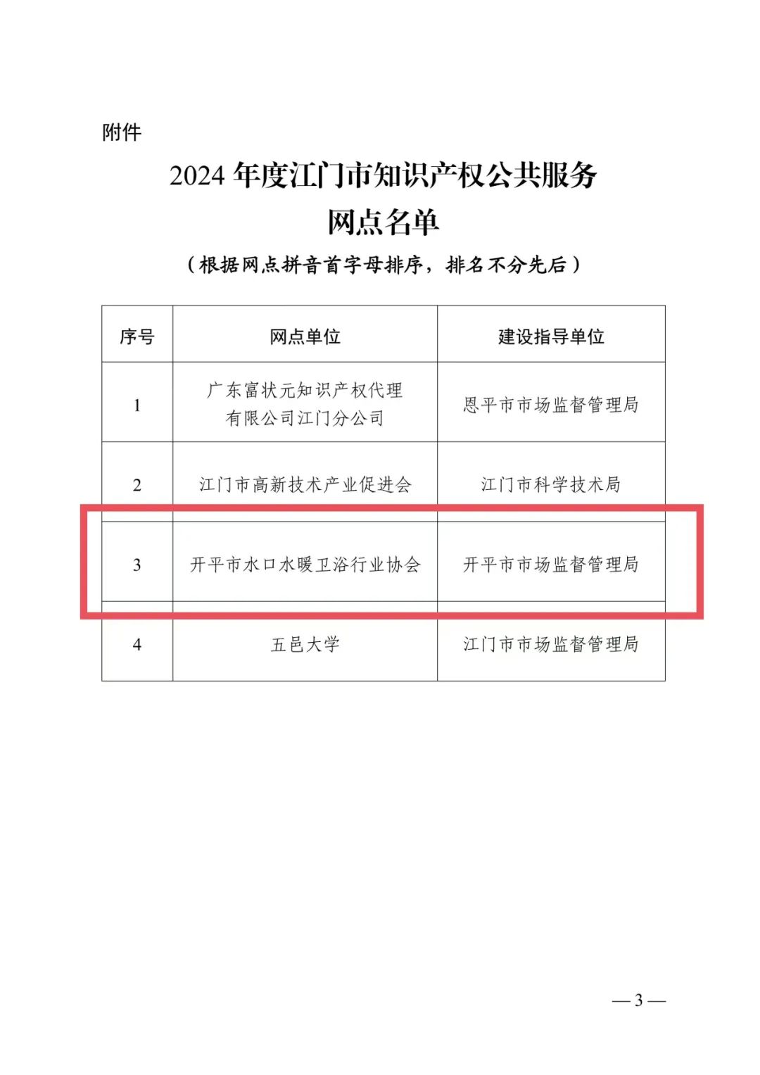 【喜訊】開平市水口水暖衛浴行業協會獲批為江門市知識產權公共服務網點