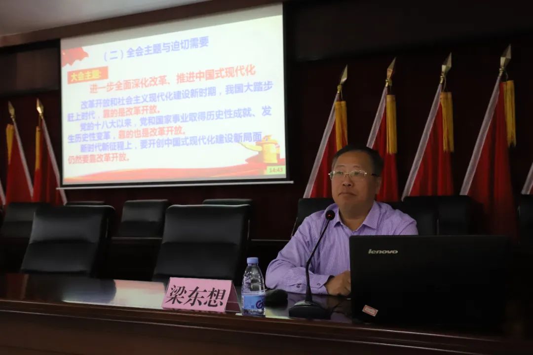 培訓班上,梁東想以《貫徹落實黨的二十屆三中全會精神 推進鎮街中心工作》為主題,結合鄉鎮基層實際,通過理論講解、案例剖析等方式,就習近平總書記關于全面深化改革的一系列新思想、新觀點、新論斷和全會《決定》以及政治理論教育、知識技能教育等方面進行了系統、全面、深入的解讀和培訓。課程設置豐富、針對性強,既有理論高度,又有實踐深度,進一步強化干部責任擔當,提升干部能力本領。