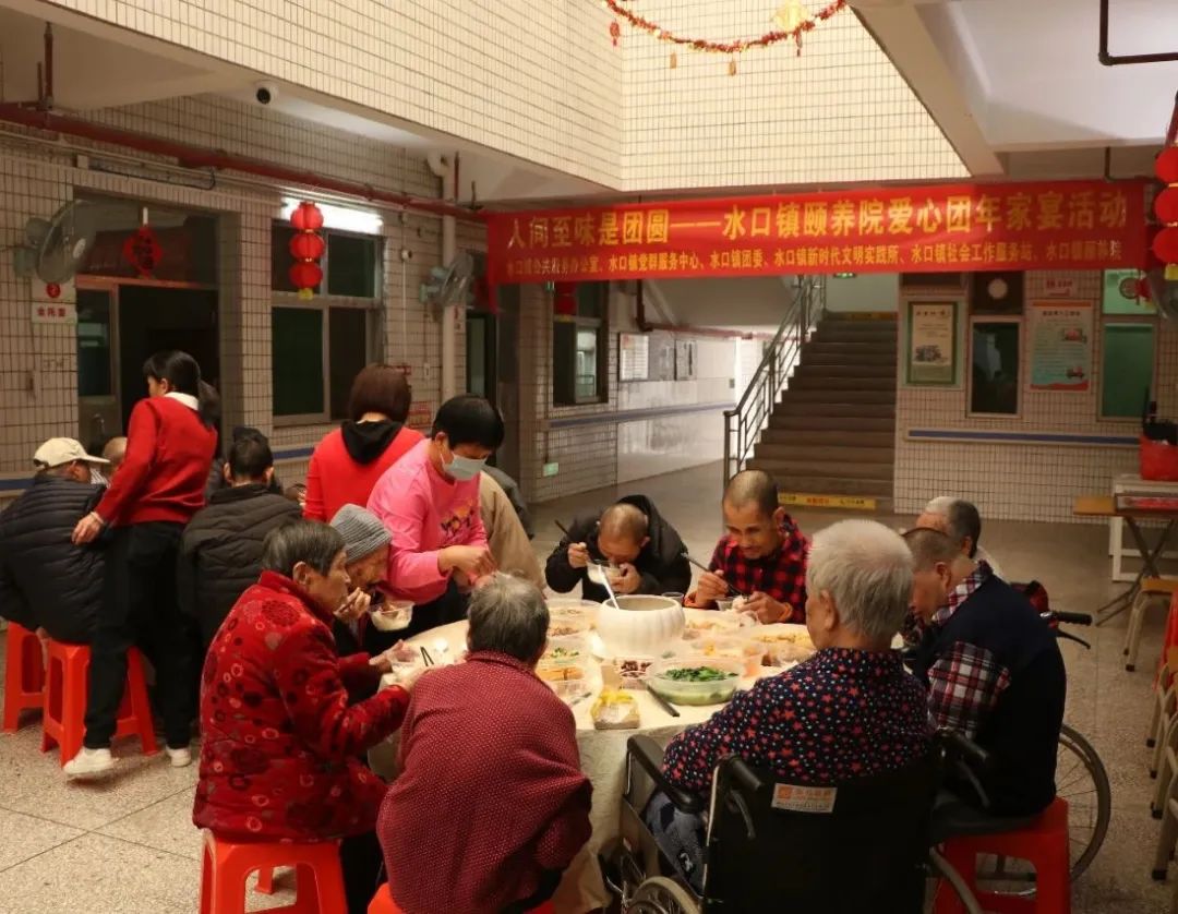 為進一步弘揚中華民族尊老、敬老、愛老、助老的傳統美德,切實深化做好長者民生關愛服務,讓頤養院的老人們過上不一樣的新年,1月24日,水口鎮黨群服務中心、水口鎮團委、水口鎮新時代文明實踐所、水口鎮社會工作服務站、水口鎮頤養院聯合舉辦的人間至味是團圓——水口鎮頤養院愛心團年家宴活動,志愿者們與在院老人共聚“幸福團年飯”,讓“家”的味道溫暖傳遞。