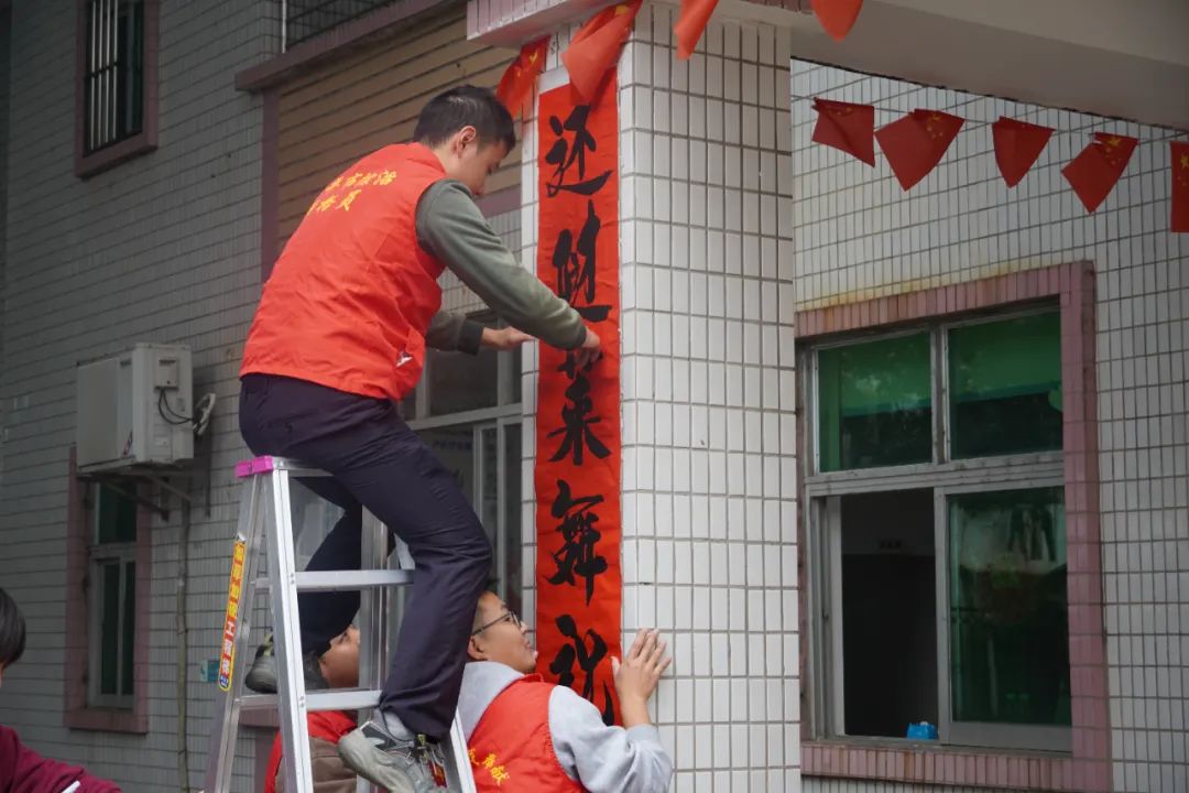 一大早,頤養院里便開啟了忙碌模式。青年黨員團員志愿者、“雙百”社工和頤養院工作人員一起精心裝扮,為院內每個角落都換上了“新衣”,喜慶的“福”字、吉祥的春聯、火紅的燈籠,還有寓意吉祥的生菜和蒜頭,處處散發著濃濃的年味。