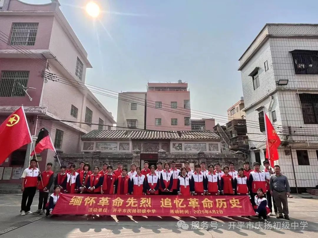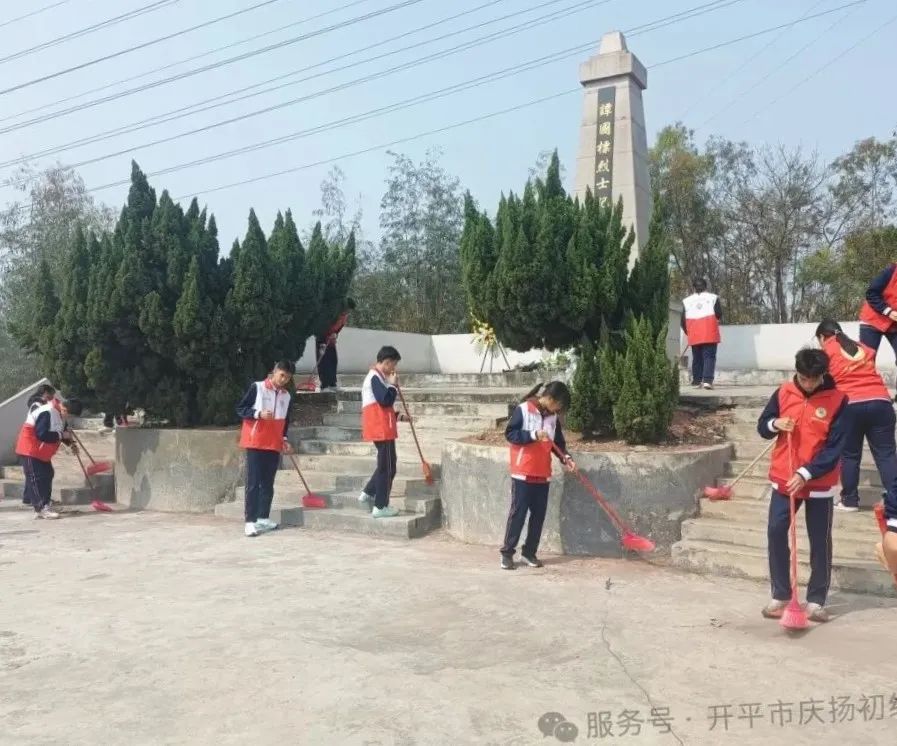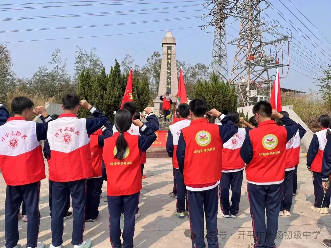 開平市慶揚初級中學精心組織開展了“清明懷古 緬懷先祖”主題班會、緬懷學校創始人譚慶揚先生、祭掃譚國標烈士紀念碑暨參觀譚國標故居、網上祭英烈等一系列清明節前緬懷革命先烈活動,通過實地參觀、專題講解、情景教學、重溫誓詞等形式,帶領同學們穿越歷史長河,回顧波瀾壯闊的革命歲月,讓全校師生們接受了一次精神的洗禮,激勵一代又一代的青少年為祖國的繁榮富強而努力奮斗。