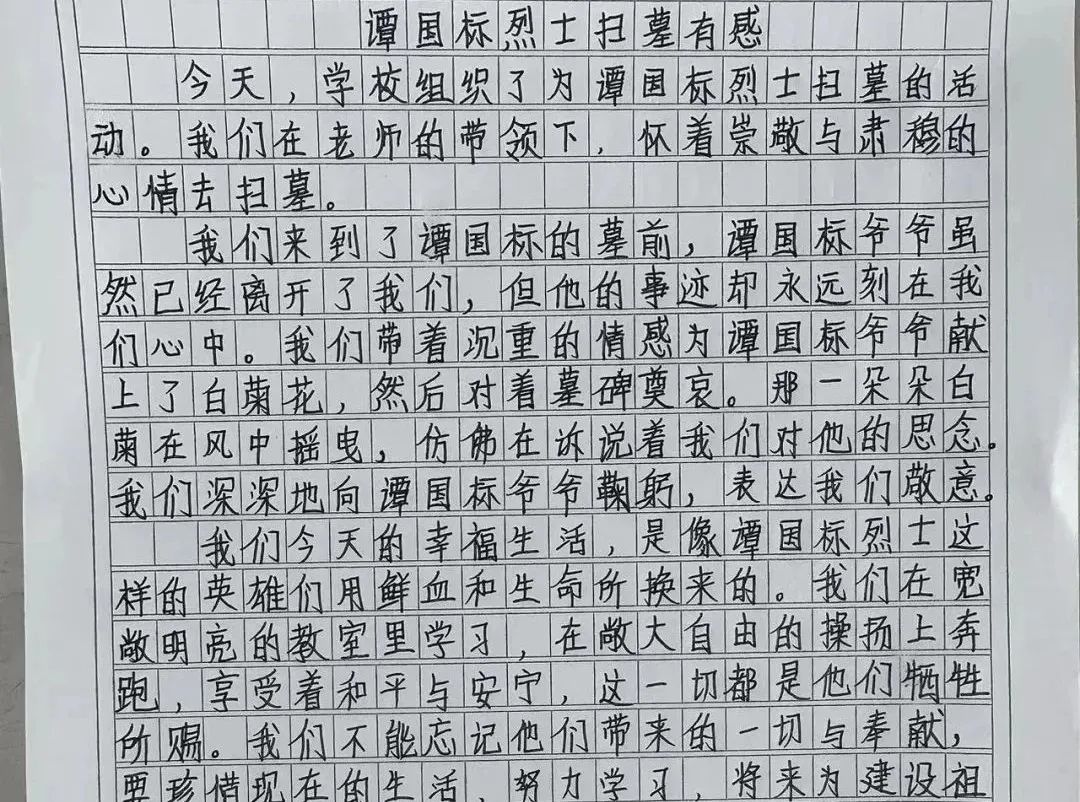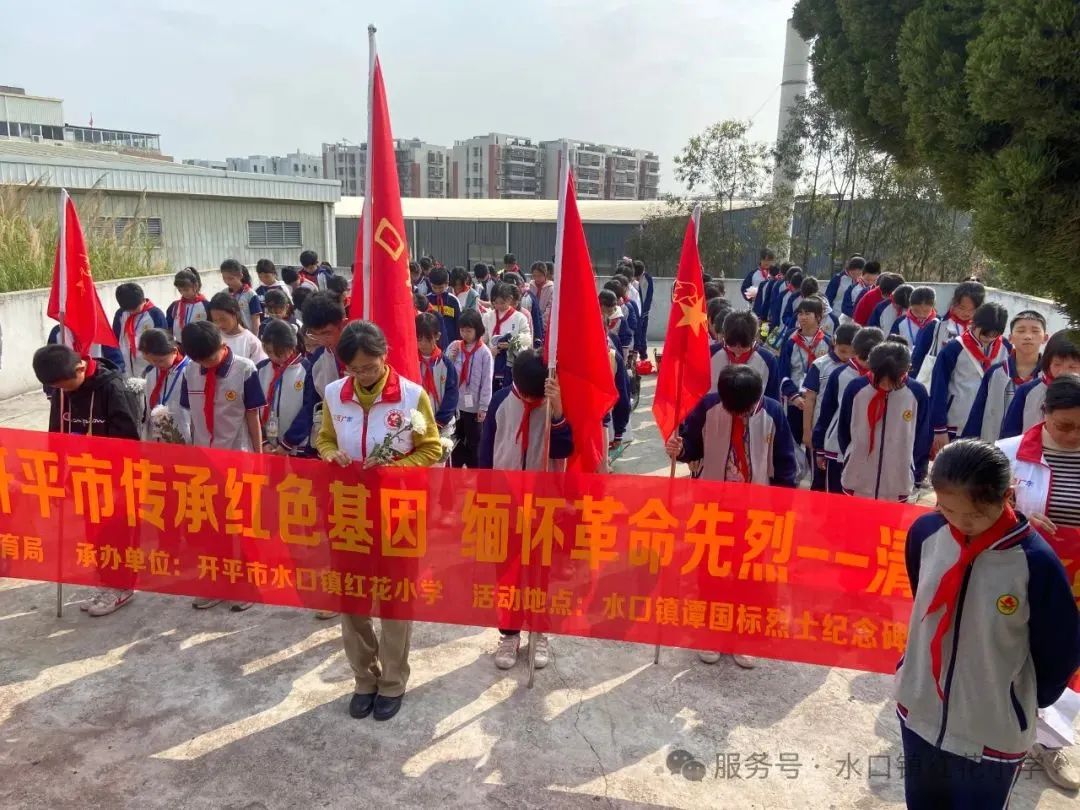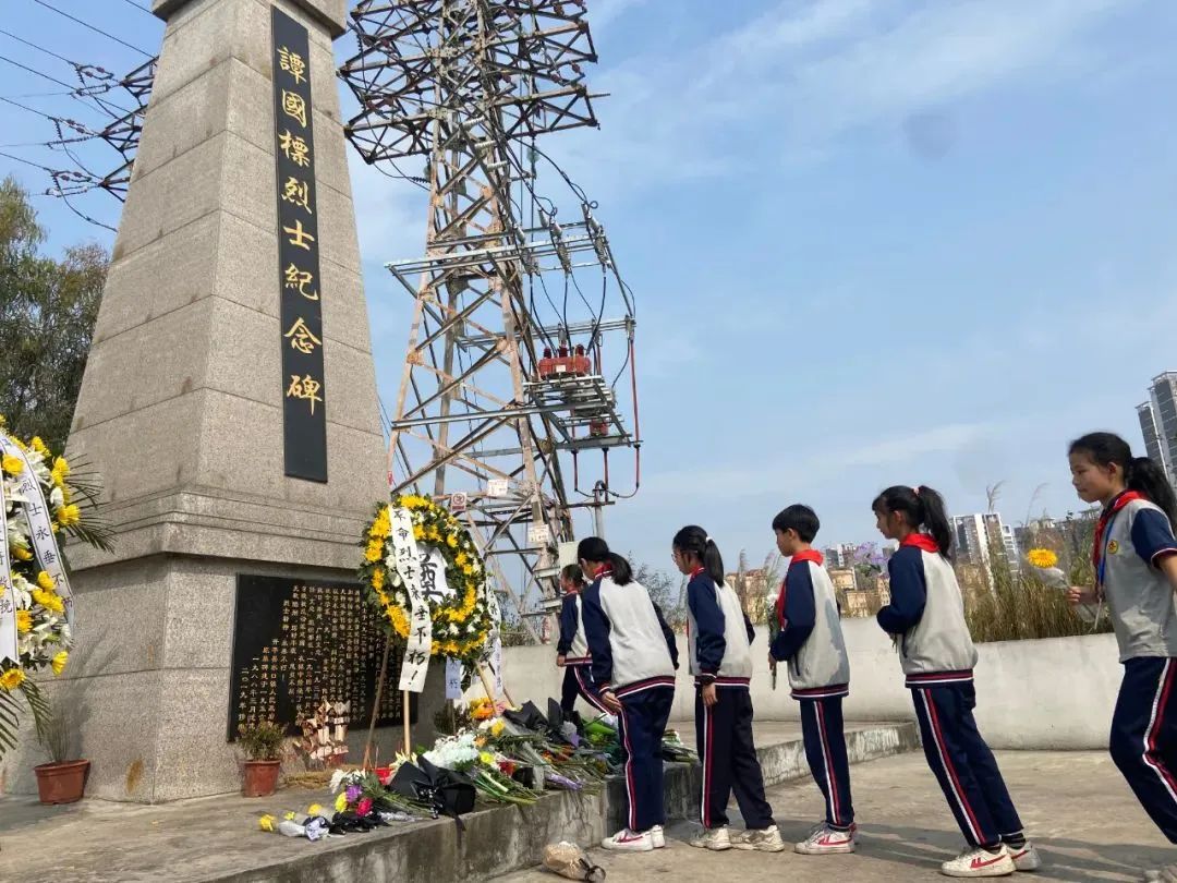 水口鎮紅花小學師生代表懷著無比崇敬的心情,前往譚國標烈士紀念碑開展清明祭掃活動。蒼松翠柏掩映下的烈士紀念碑前,同學們面向紀念碑齊聲高唱中國少年先鋒隊隊歌,清脆嘹亮的歌聲飽含對先烈的追思與敬仰。隨后,全體人員整齊列隊,肅立默哀。緊接著,全體在場師生依次獻上手中的鮮花,寄托對烈士的深深哀思與崇高敬意。活動結束后,同學們寫下了自己對先烈的敬仰與追思,表示要繼承先烈遺志,勤奮學習,努力成為棟梁之材,為實現中華民族偉大復興的中國夢貢獻力量。