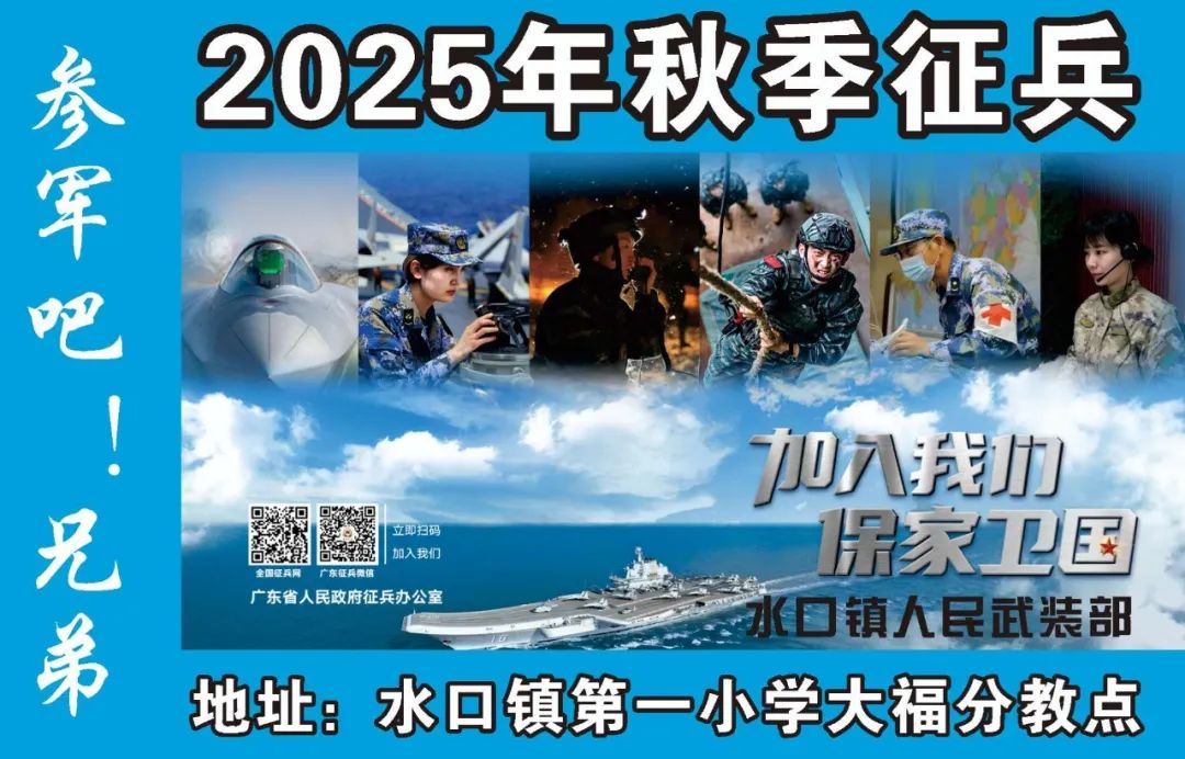 水口鎮2025年下半年秋季征兵體檢工作將于7月28日(下周一)開平市水口鎮第一小學大福分教點進行。