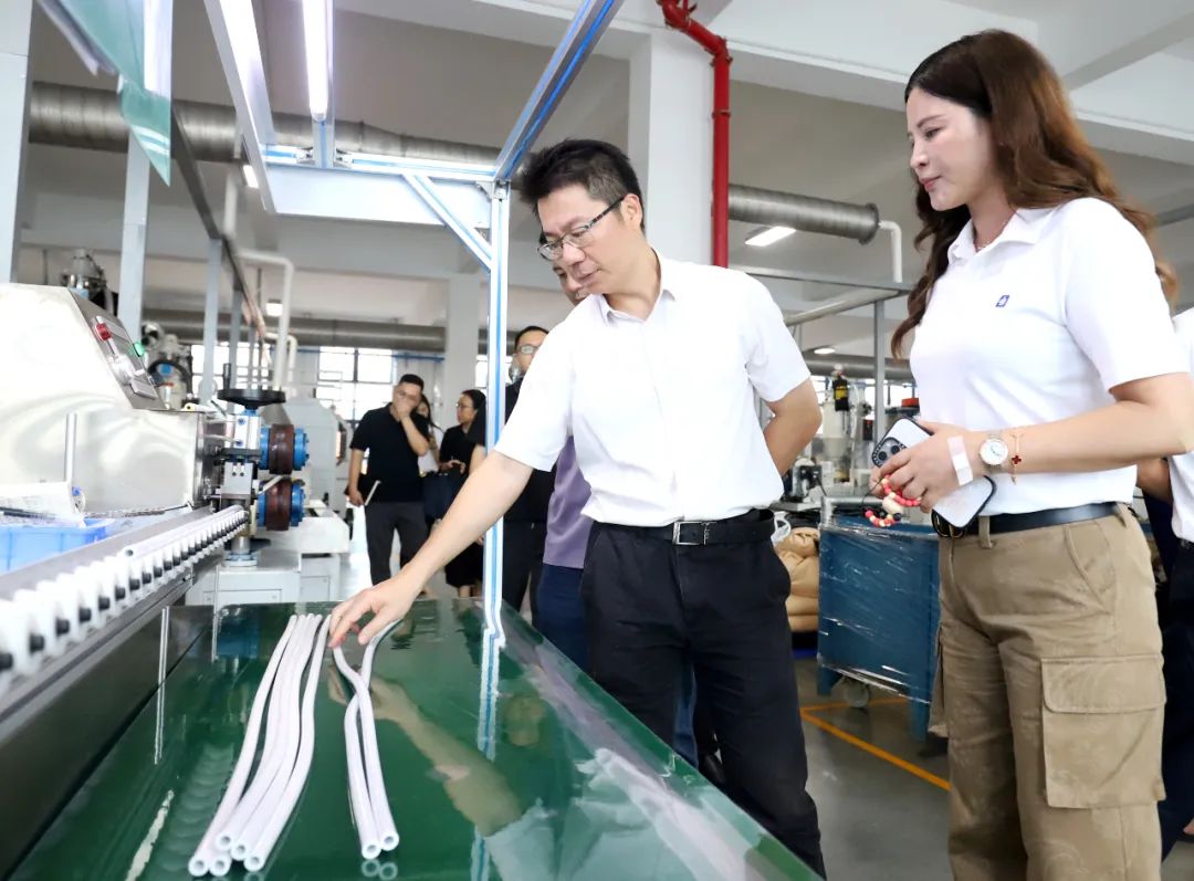 在意尼家居科技(開平)有限公司和廣東頂尖管業科技有限公司,梁毅渝一行走進企業生產車間、實驗室和展廳,全面了解水暖衛浴產品的生產工藝流程、技術研發和市場應用等情況,并與企業負責人深入交流,了解企業生產經營狀況和發展規劃,傾聽企業發展訴求,協調解決有關困難問題。