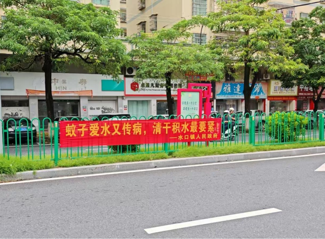 “兩熱”防控不是單打獨斗,需要廣大居民群眾的共同參與。水口鎮采取“線上+線下”“視覺+聽覺”的立體宣傳模式,讓防控防線越織越密。