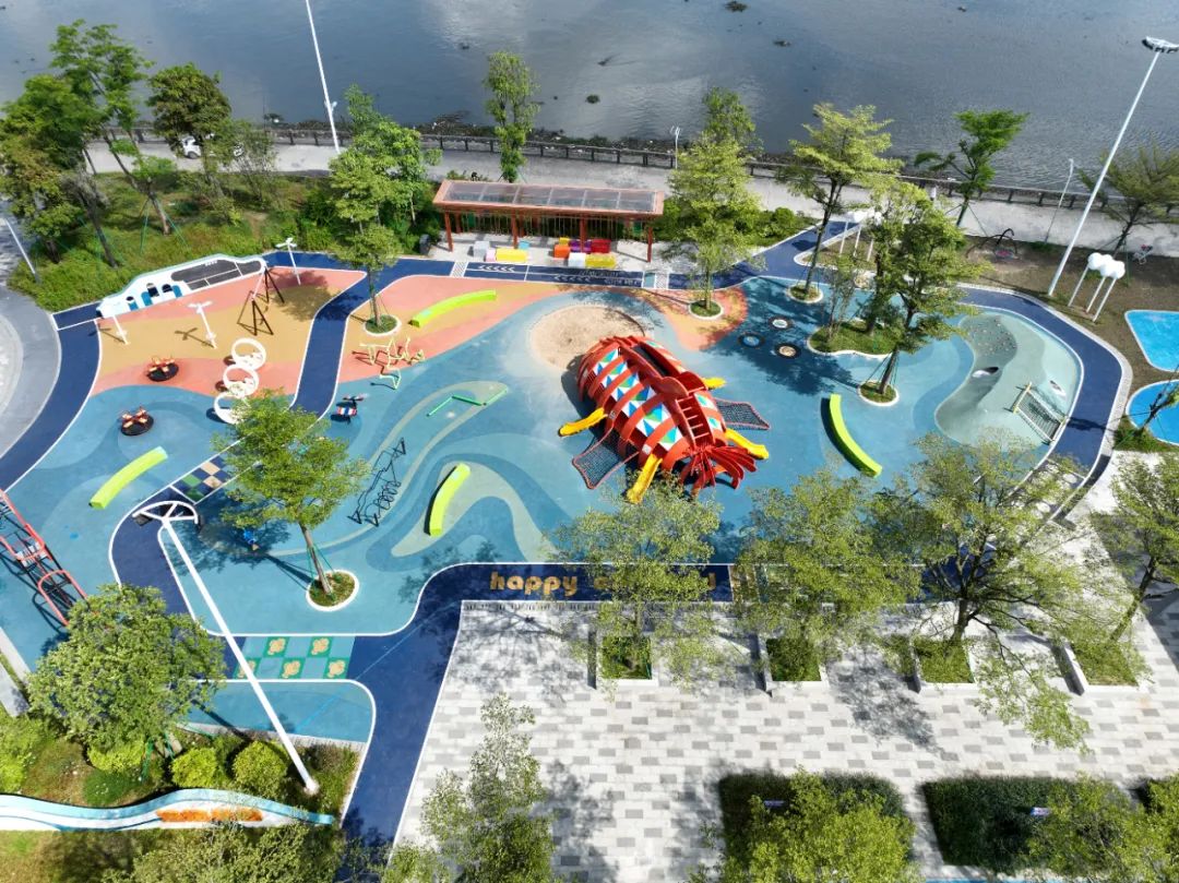 其中,面積達1630平方米的兒童樂園是長廊的核心亮點,園內配備了大魚滑梯、迷你攀巖點、兒童健身器材等多樣化兒童設施,為不同年齡段兒童打造了一個安全益智的活力天地。