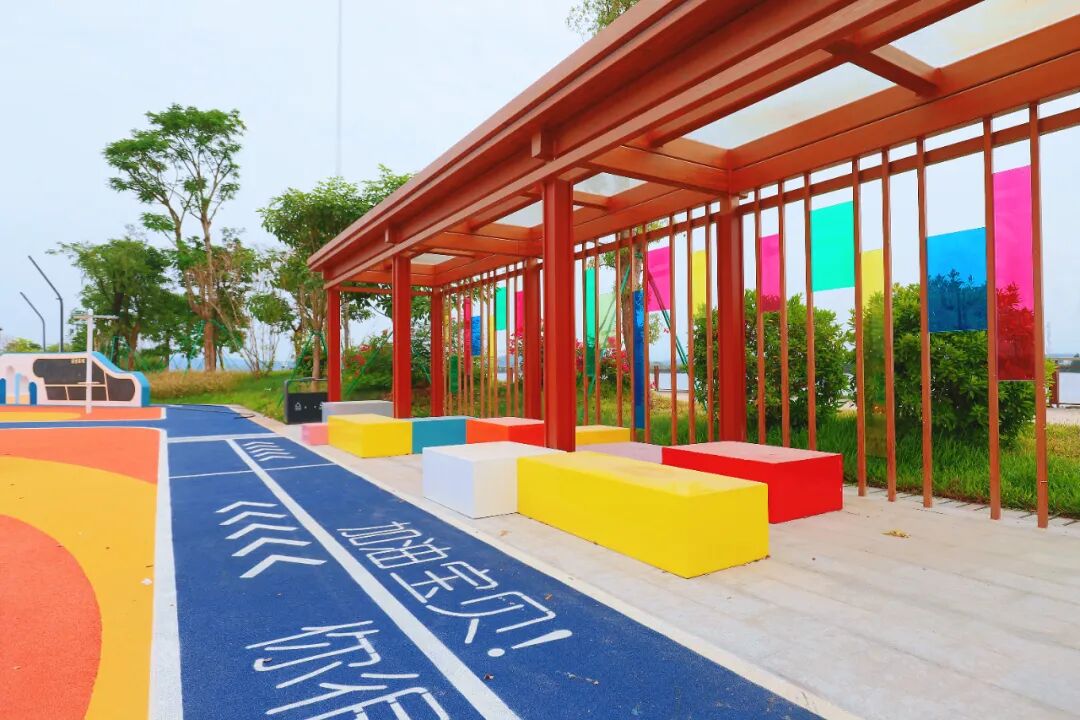 此外,一條蜿蜒的彩色健身跑道貫穿整個長廊,不僅滿足市民散步健身的需求,也成為大家親近自然、欣賞生態美景的紐帶。