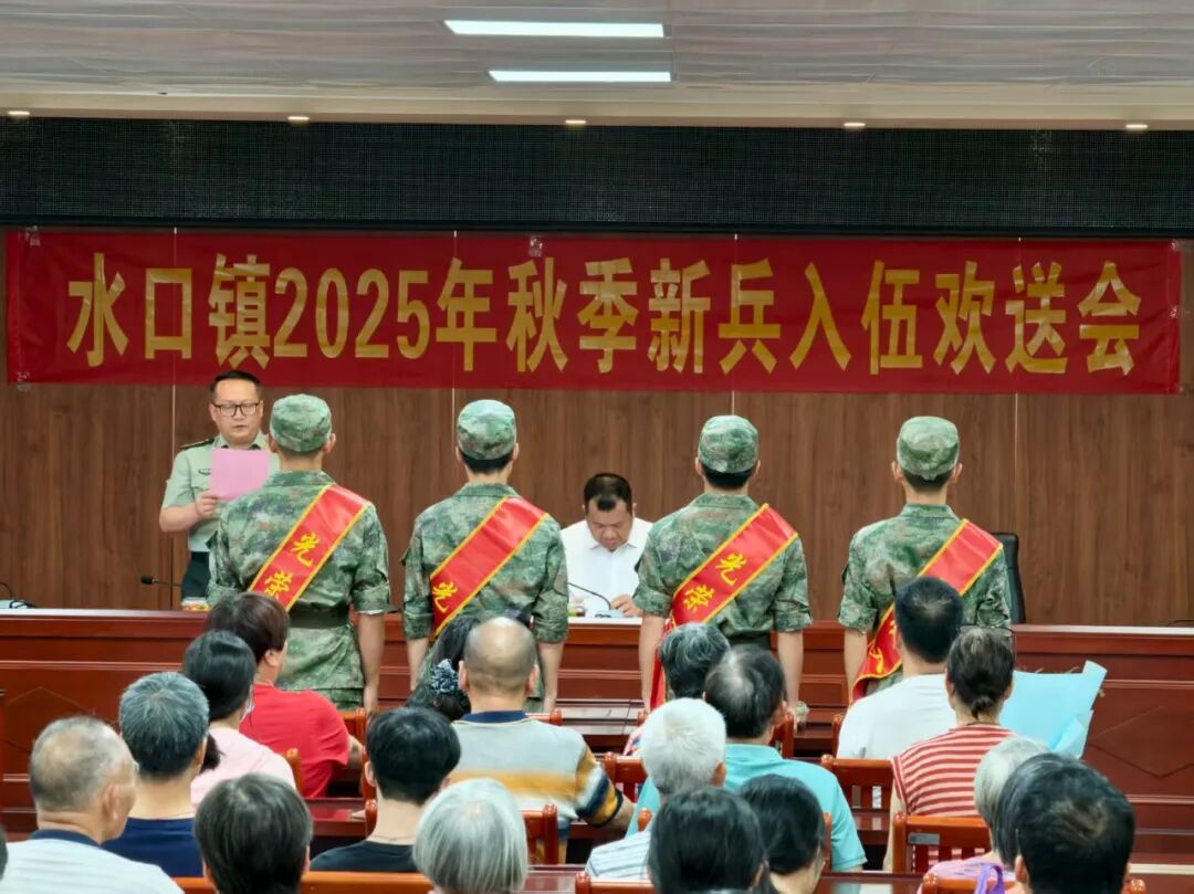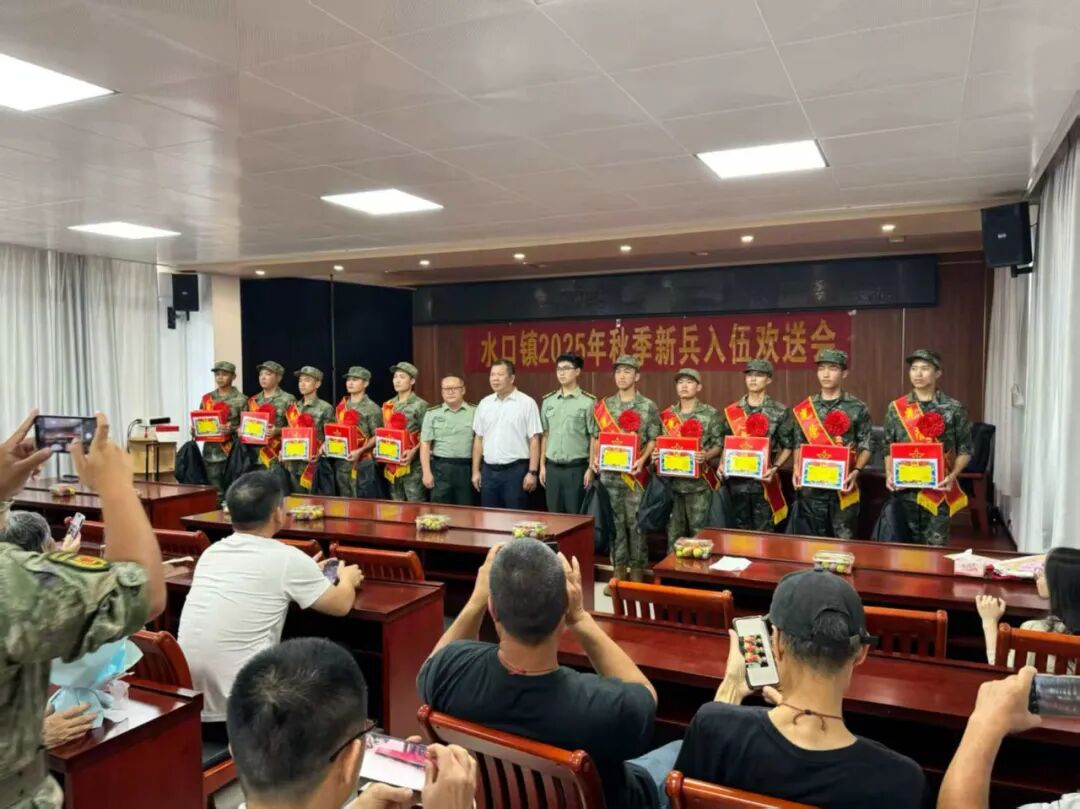 金秋九月送新兵,身披戎裝踏征程。9月14日,水口鎮(zhèn)舉行2025年秋季新兵入伍歡送會(huì)。10名熱血青年身著嶄新軍裝、胸佩鮮艷紅花,精神抖擻,意氣風(fēng)發(fā),即將告別故土親人,開啟軍旅新征程。水口鎮(zhèn)黨委副書記、鎮(zhèn)長胡萬程出席歡送儀式并講話。鎮(zhèn)武裝部工作人員、村(社區(qū))干部和新兵家屬到場共同見證這一光榮而神圣的時(shí)刻。