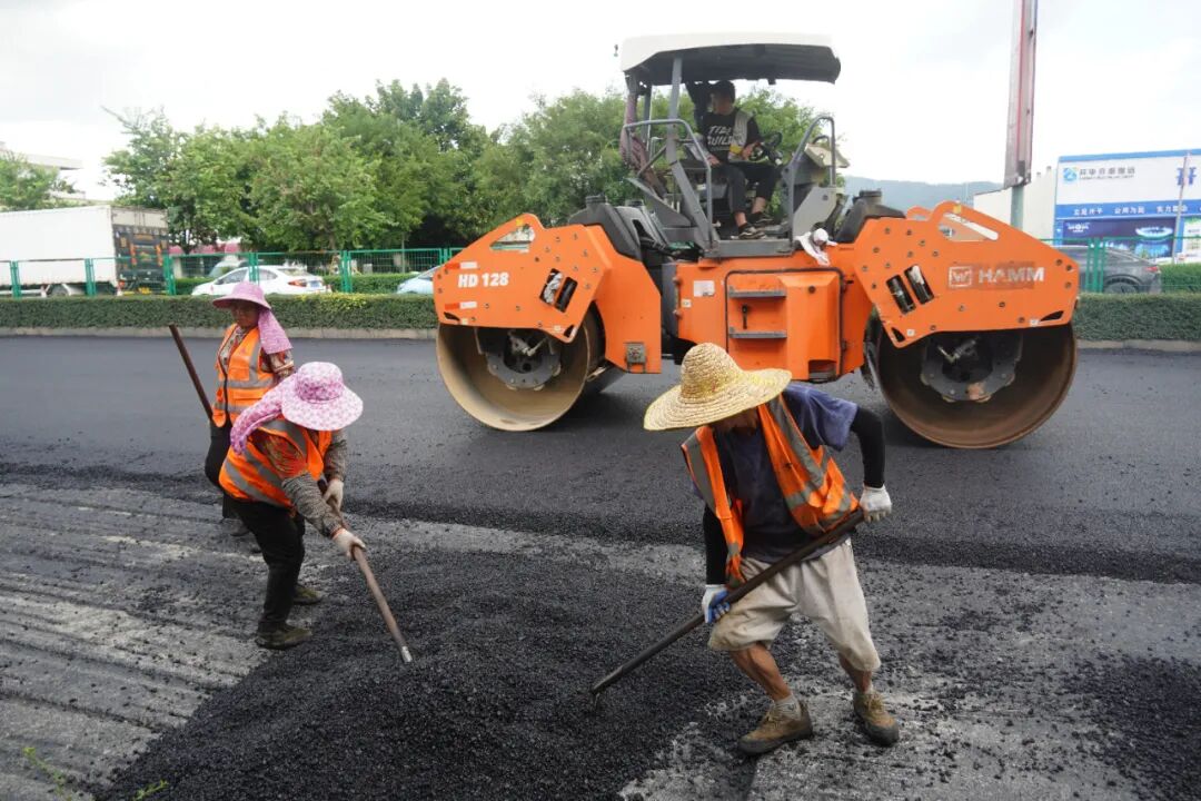 9月11日下午,在國道325線水口至市區路段預防性養護工程的施工現場,攤鋪機正吞吐著滾燙的瀝青,工人們各司其職忙著攤鋪、碾壓,一派熱火朝天的施工景象,各項工作正緊鑼密鼓推進。