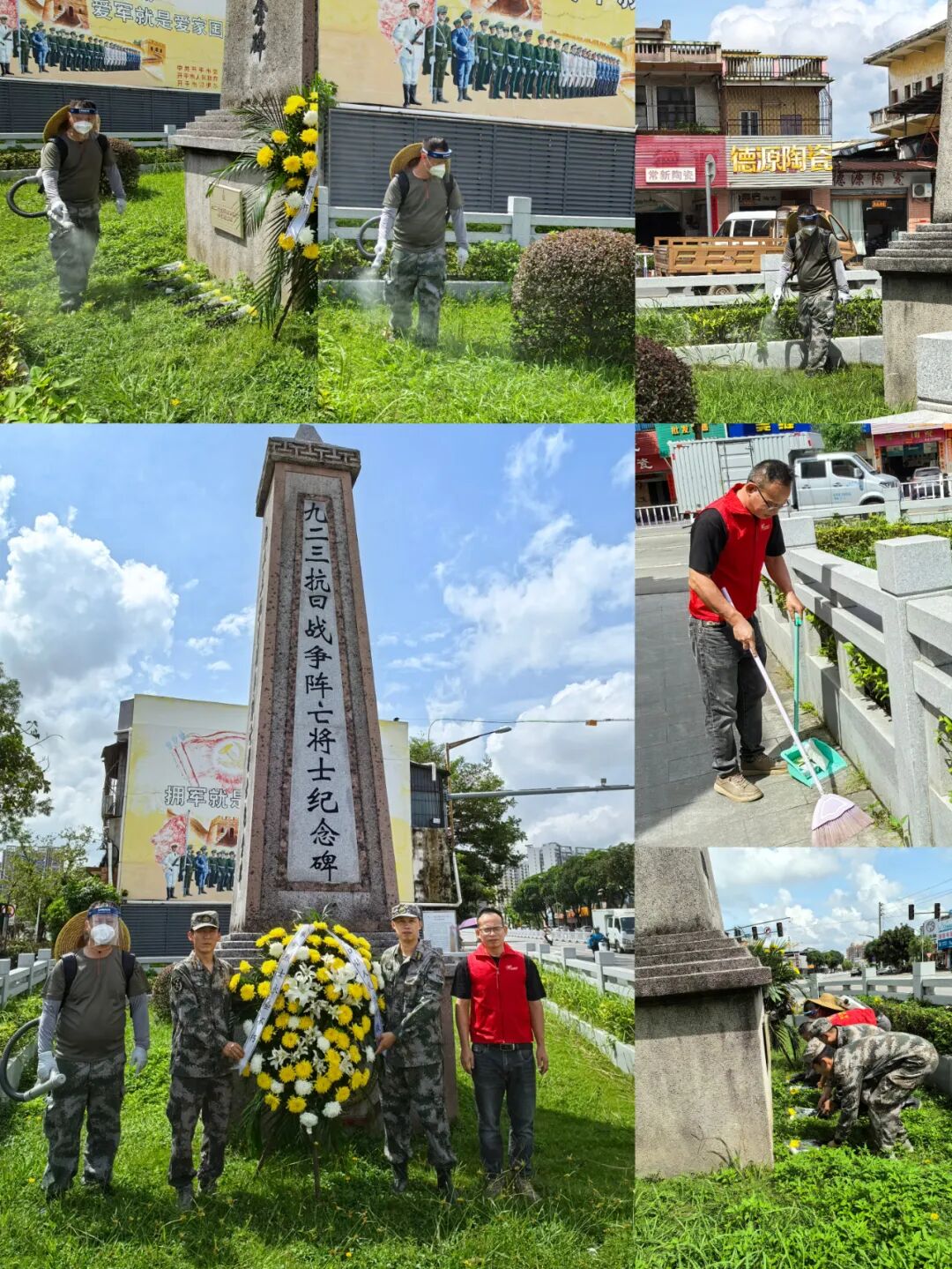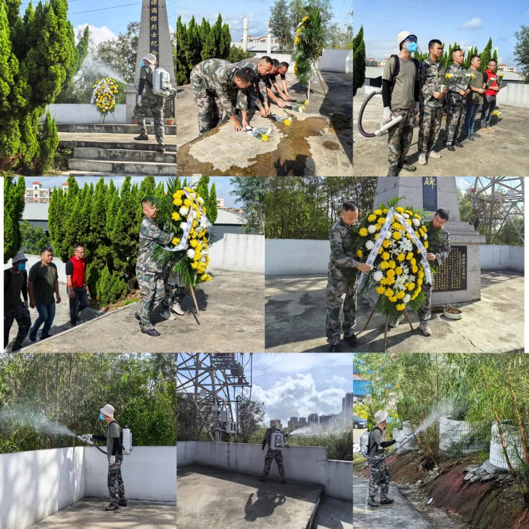 活動(dòng)開(kāi)展前,全體人員分頭有序地對(duì)烈士陵園的衛(wèi)生進(jìn)行大清潔,認(rèn)真地擦拭紀(jì)念碑上的塵土,清掃周邊的落葉雜物,并對(duì)綠植進(jìn)行防滅蚊消殺,用雙手為先烈們守護(hù)起一方整潔莊嚴(yán)的紀(jì)念空間。
