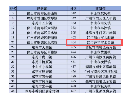 開(kāi)平市水口鎮(zhèn)上榜