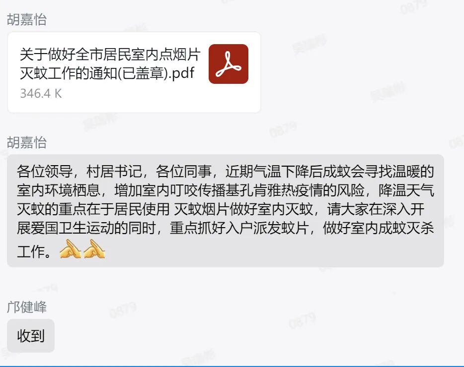 “阿叔,這是免費派發的滅蚊片,現在秋天毒蚊子特別厲害,一早一晚做好防護,點上蚊香或滅蚊片”“點滅蚊片的時候一定要放在防火托盤上,遠離窗簾、紙張等可燃物,點燃之后就去上班,回家之后注意通風,就能享受‘無蚊’之家”……黨員干部和志愿者的貼心叮囑,確保家家戶戶都能安全、正確地使用防蚊產品,讓滅蚊片和蚊香真正發揮“滅蚊利劍”和“驅蚊護盾”的作用。