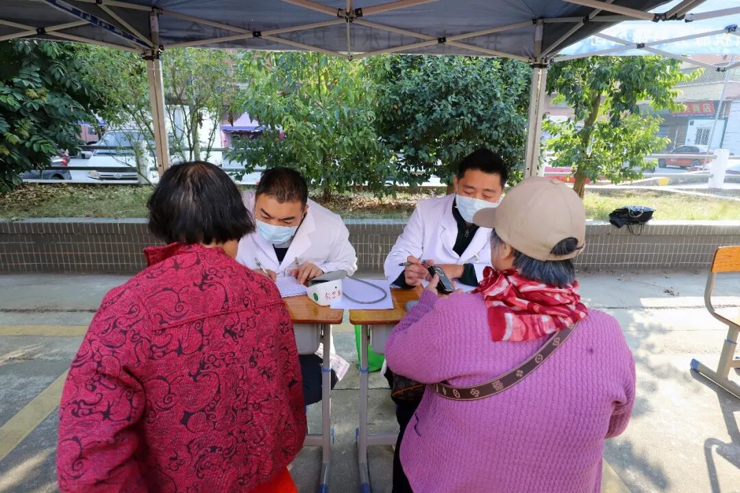 義診攤位前,專家們細致為村民診斷病情,解讀體檢報告,并提供測量血壓、血糖等服務。