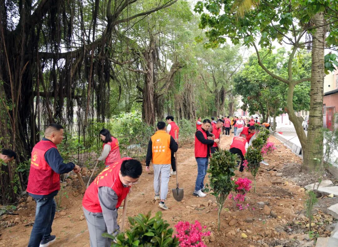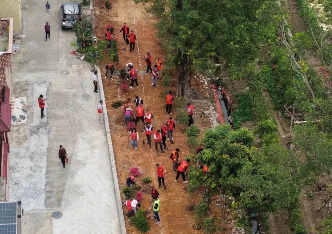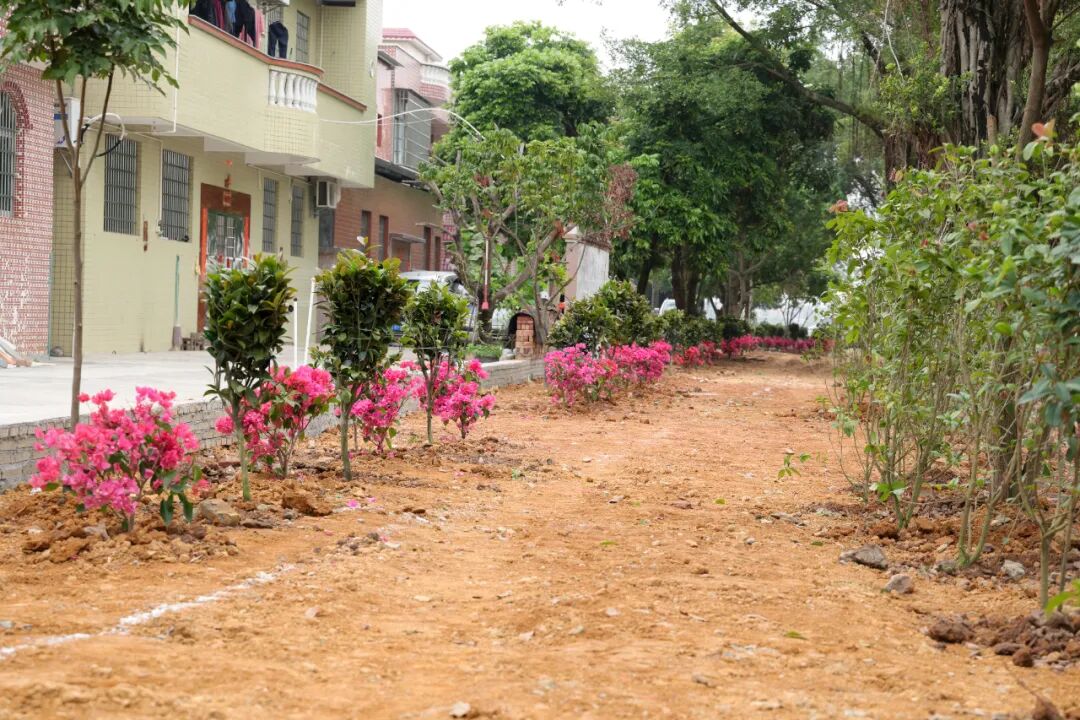 經過眾人辛勤勞作,60棵桂花、40棵紅茶花、40棵簕杜鵑迎風挺立、生機盎然,完成鄉村綠化面積2.3畝,在春日里勾勒出一道清新的綠色風景線,與剛完成硬底化的村道交相輝映,一幅“景在村中、村融景中”的和美鄉村畫卷正徐徐展開。