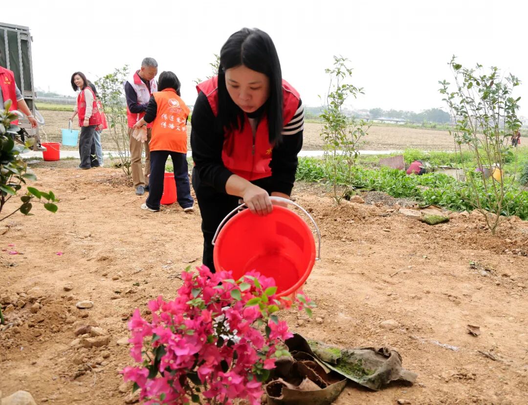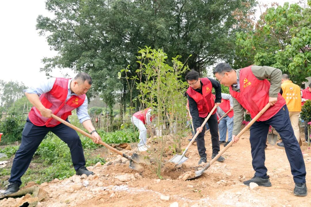 活動現場,梁毅渝、劉劍鋒、胡萬程等市鎮領導帶頭垂范,與鎮村黨員干部、企業代表、志愿者們齊心協力、共同添綠。