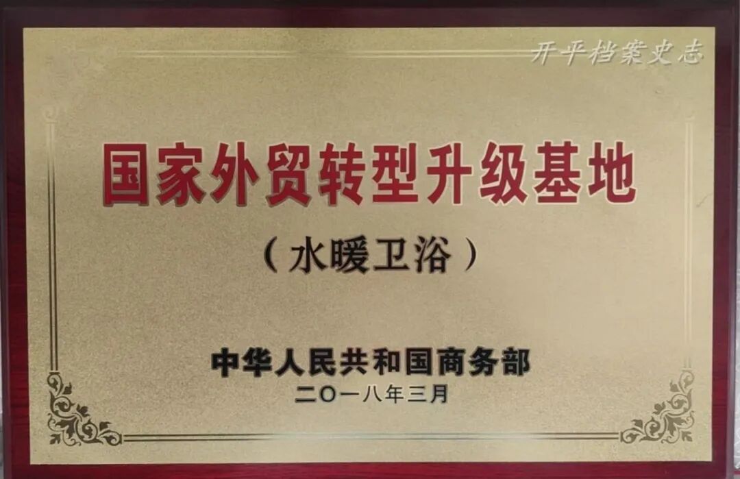 2018年3月,開平市水口鎮(zhèn)被商務部評為國家外貿轉型升級基地(水暖衛(wèi)浴)