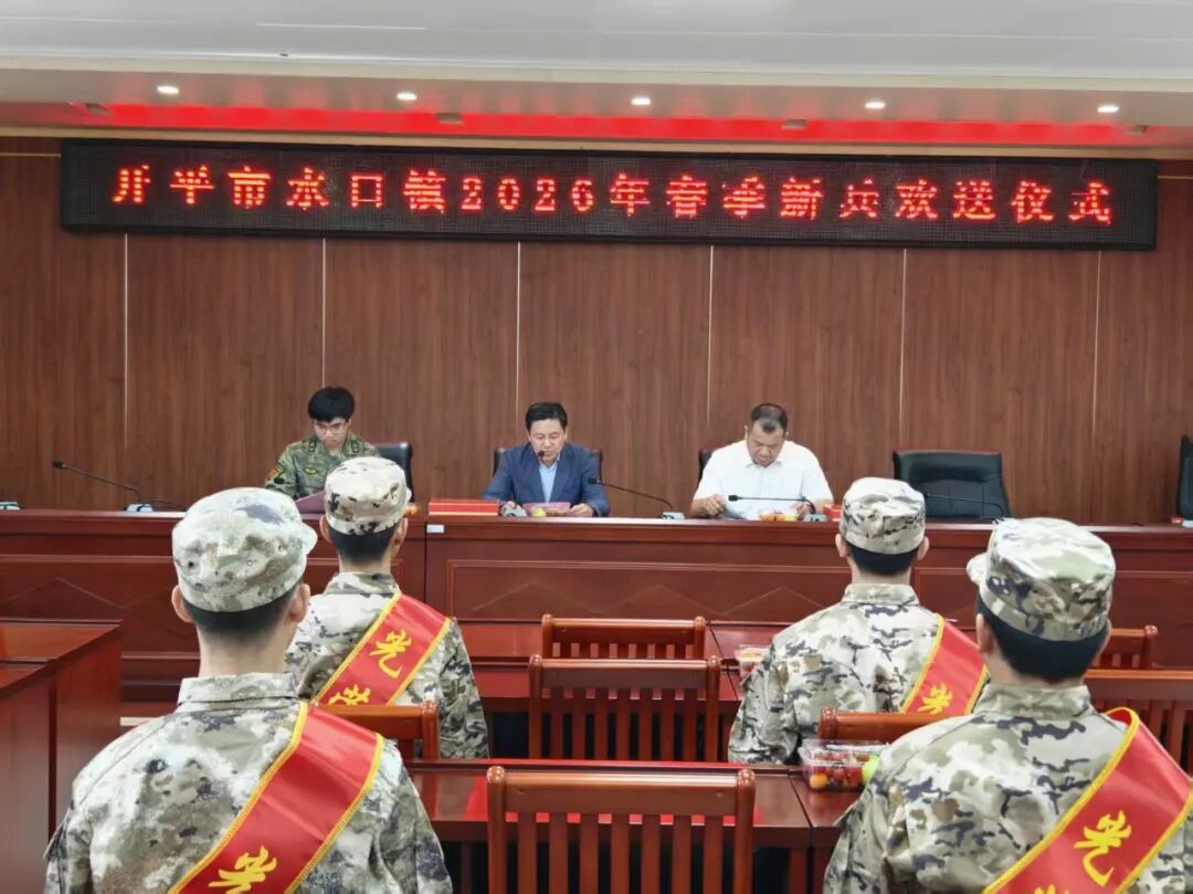 陽春三月送新兵,一身戎裝踏征程。為弘揚愛國擁軍優良傳統,進一步激發廣大適齡青年的參軍報國熱情,營造關心國防、尊崇軍人的濃厚氛圍,3月13日,水口鎮人民政府舉行2026年春季新兵入伍歡送會,為即將踏上軍旅征程的新兵們壯行。水口鎮黨委書記司徒錦泉,鎮黨委副書記、鎮長胡萬程出席歡送會。