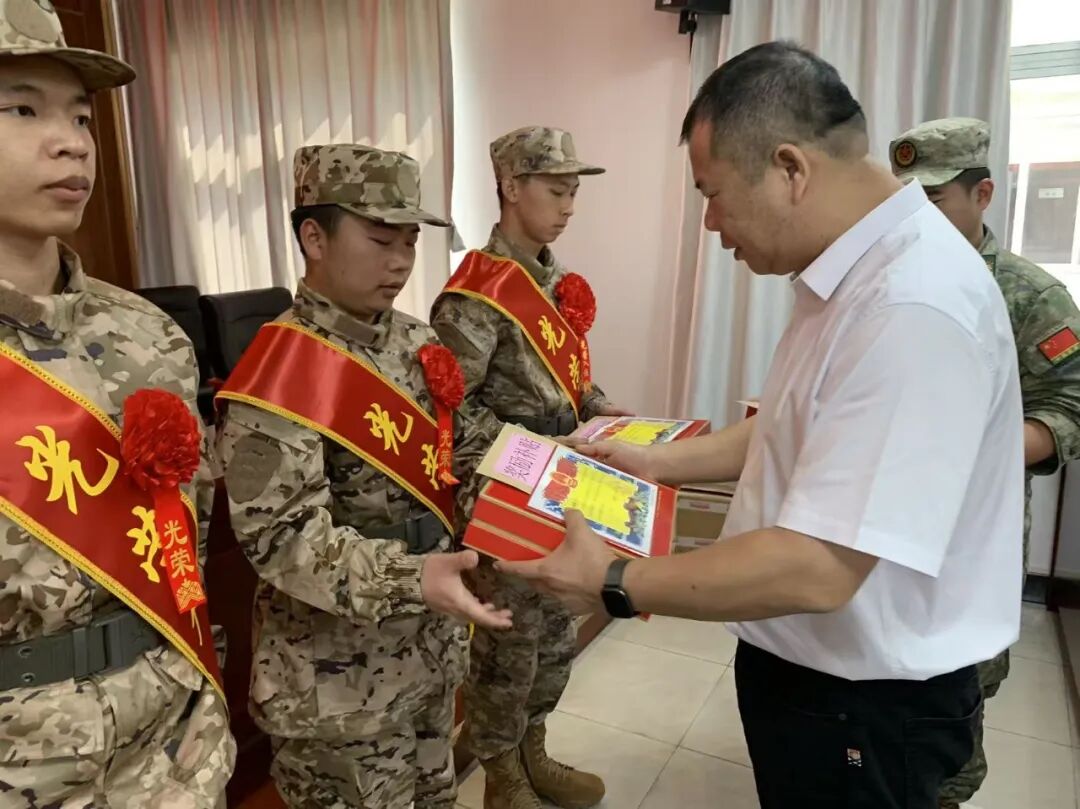 隨后,司徒錦泉、胡萬程為新兵們頒發紀念品及慰問金,并與他們一一握手,寄語殷殷。