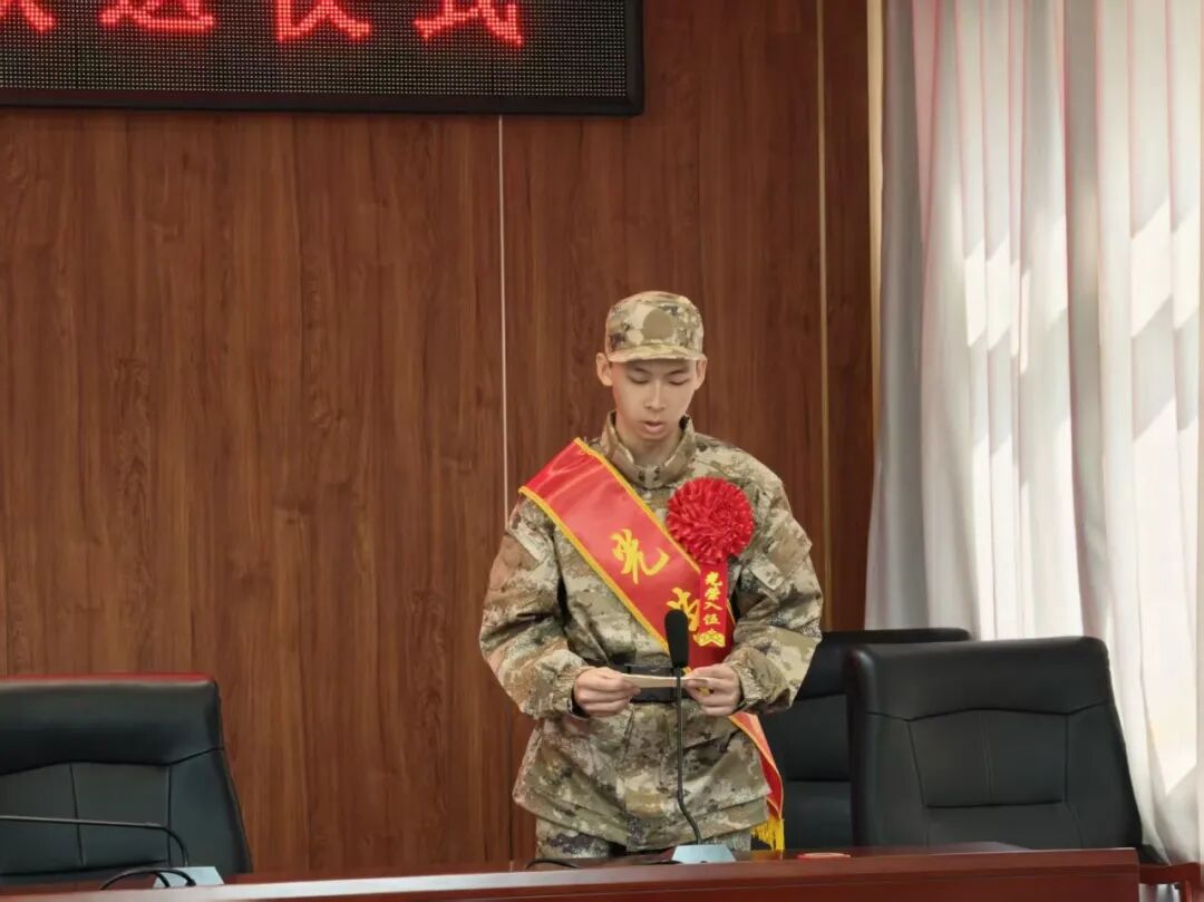 新兵代表張育坤上臺作表態發言,他表示,將牢記家鄉人民的殷切期盼,珍惜軍旅時光,刻苦訓練,勇挑重擔,錘煉過硬作風與本領,努力爭當“四有”優秀軍人,用青春和熱血守護家國安寧,絕不辜負黨和政府及父老鄉親的信任與重托。