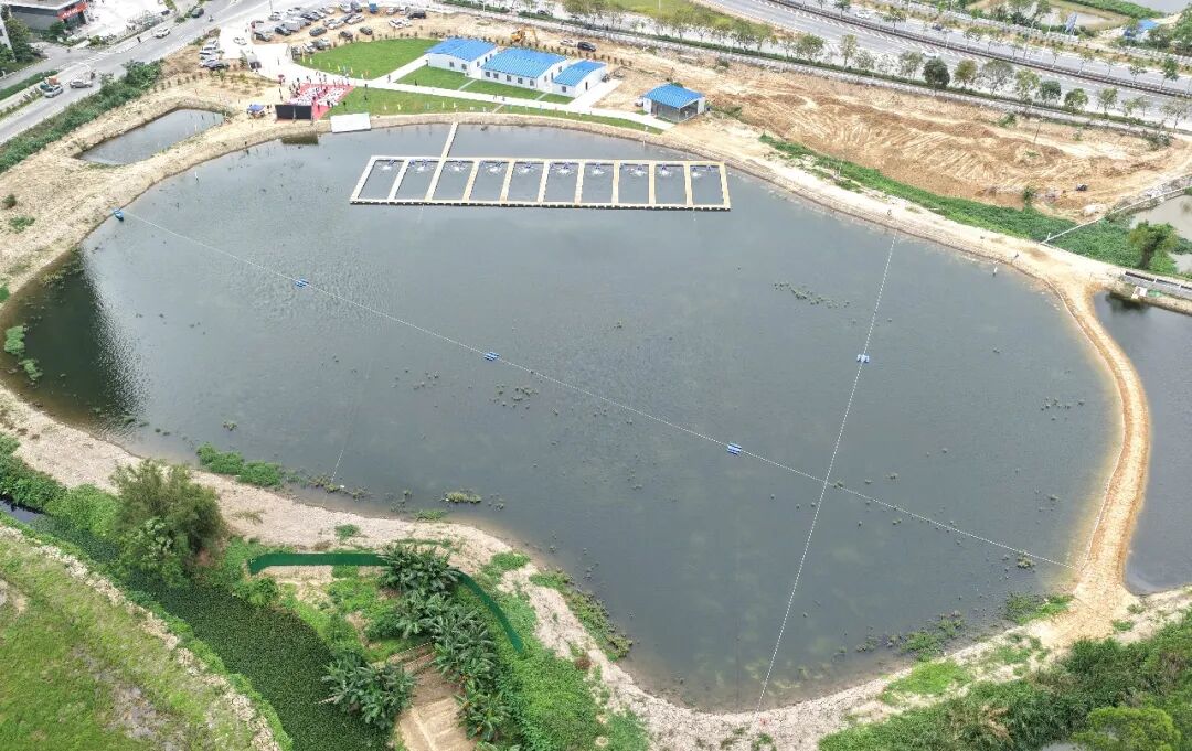 走進開平市水口鎮淡水魚生態養殖示范基地,2公頃(30畝)水域間,10條標準化“噴射式跑道”養殖槽格外醒目,這是基地核心的養殖區域。“我們的基地以跑道式高密度混養與魚菜共生系統為核心,集成養殖尾水治理模式,實現了尾水零排放與資源化再利用。”珠西匯江養殖總監蕭佳粵介紹。