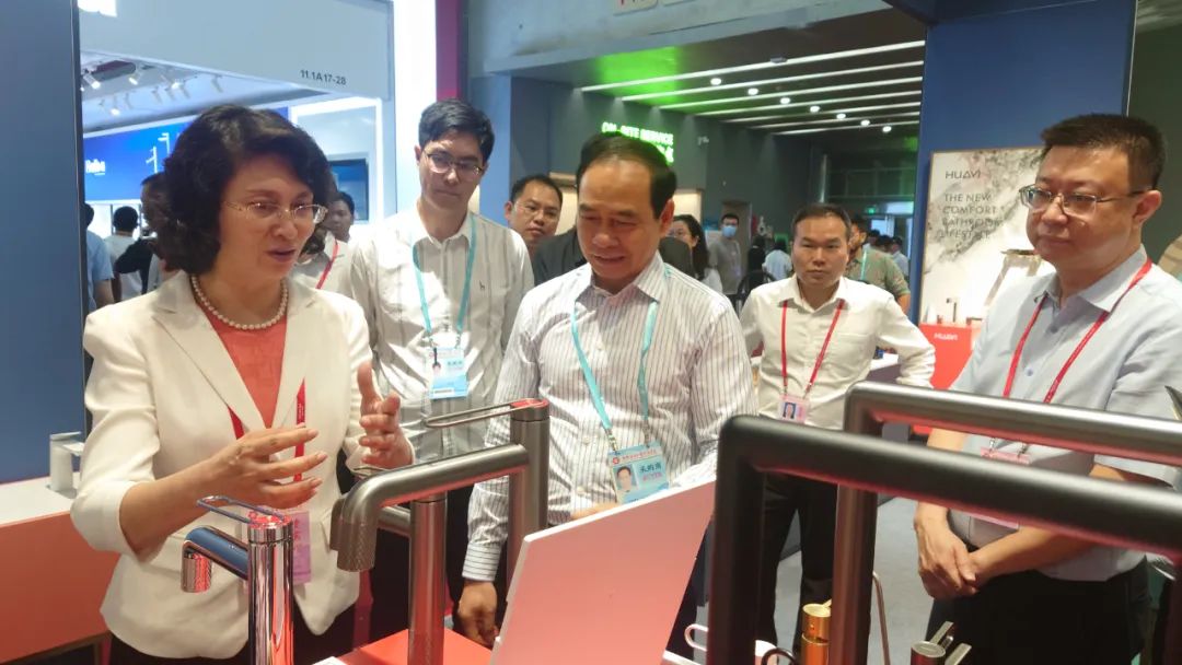 商務部黨組副書記、國際貿易談判代表兼副部長王受文來到華藝衛浴展位前,饒有興致地觀看產品演示,詳細了解企業參展情況,并對華藝衛浴產品質量給予高度評價。
